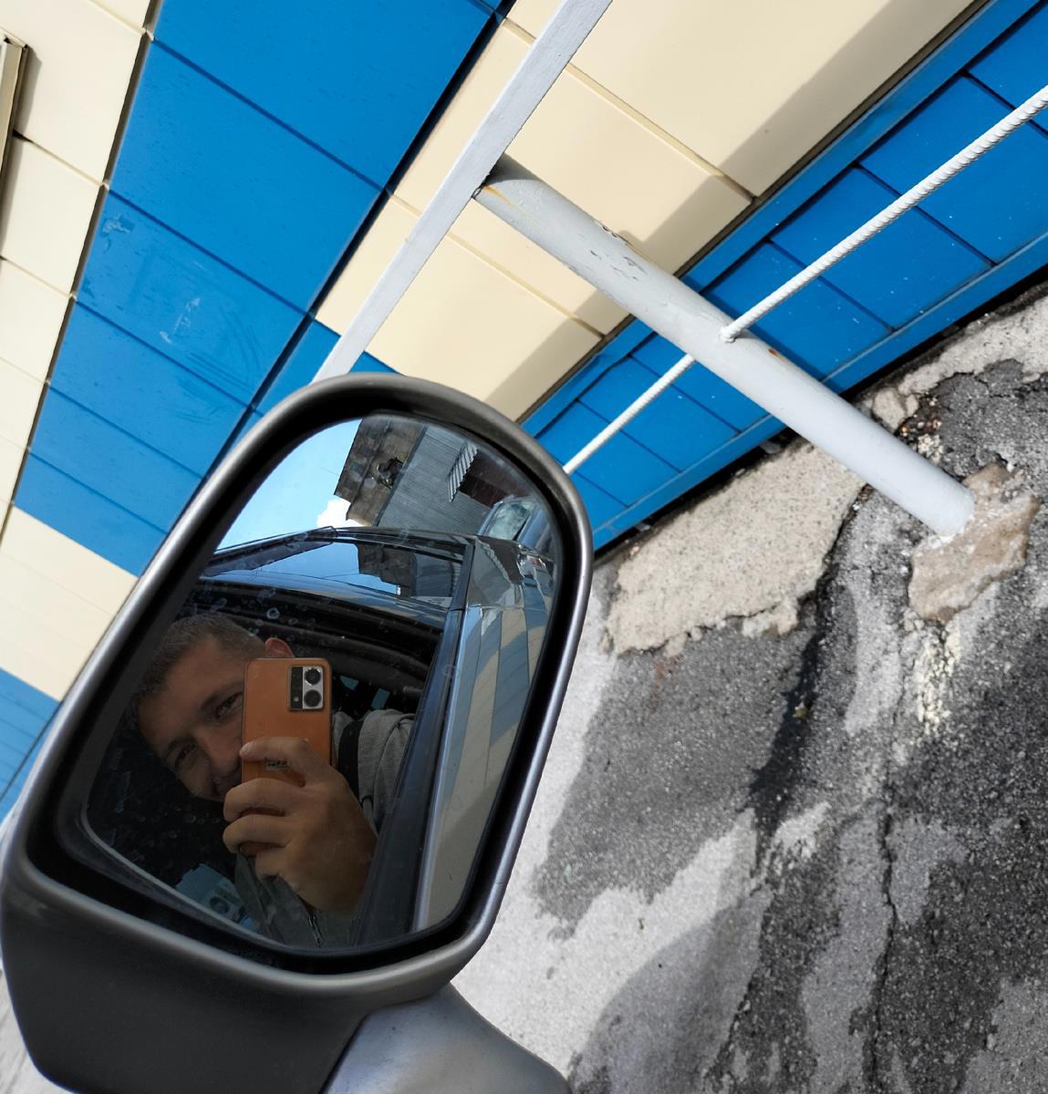 Сфотографировал себя в зеркало бокового вида.