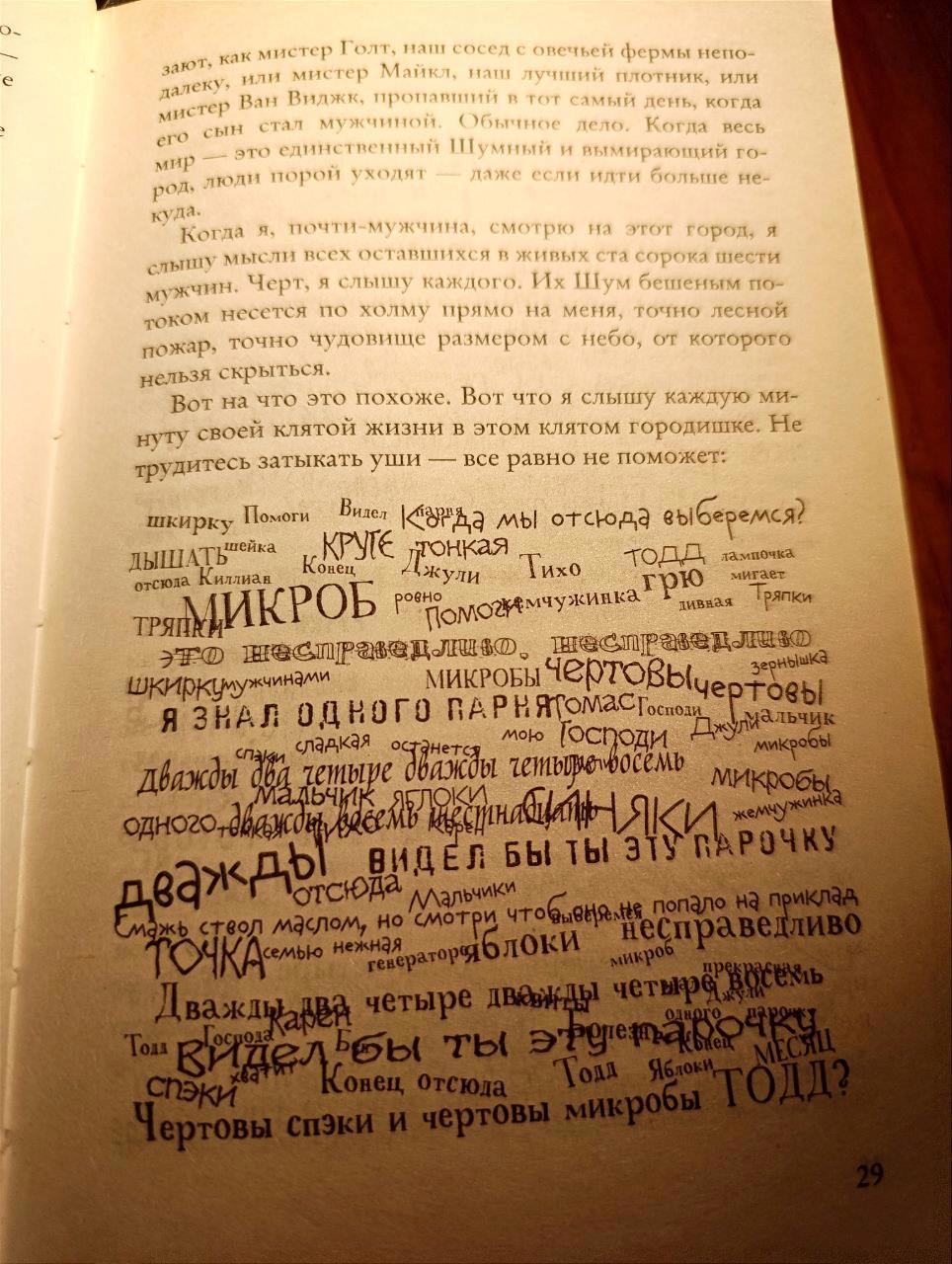 Автор идёт дальше и погружает нас в быт общества, в котором все слышат мысли друг друга, нет тайн.