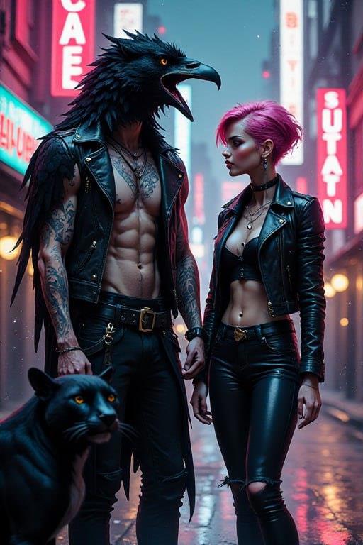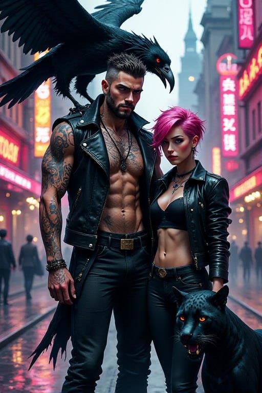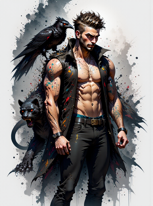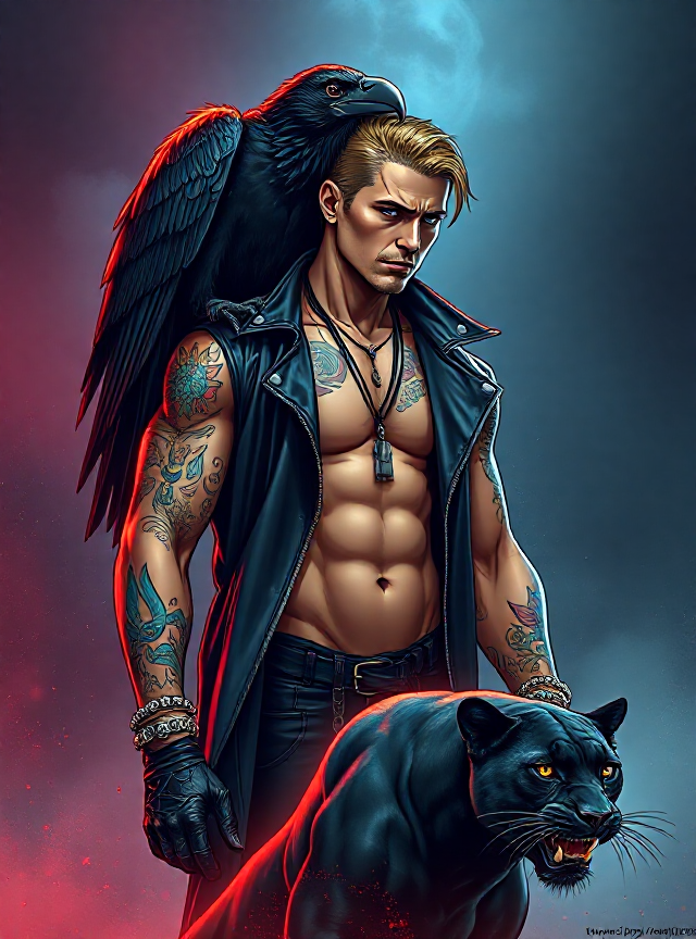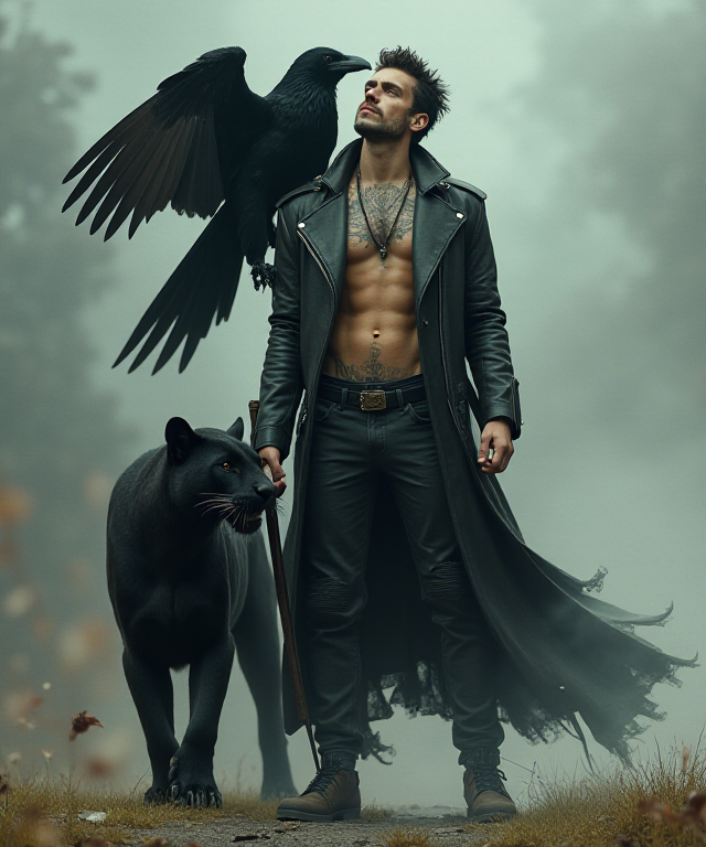 Давайте для примера. Вот нужна мне картинка для книги, стоит конкретная задача - мужик в кожаном плаще, без рукавов, на плече ворон, рядом пантера. В целом несложно, миджорни например такой промпт вполне съест, но вот если мы попробуем загнать его в народный Stable Diffusion, в любую в общем-то модель, то скорее всего получится что-то такое: