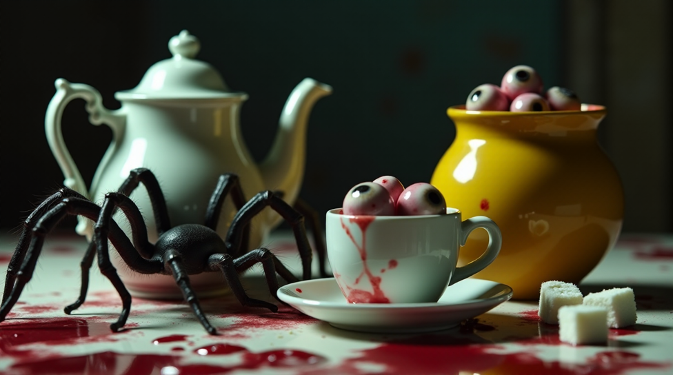 Красота. Что еще? Два паука в шляпках пьют чай.