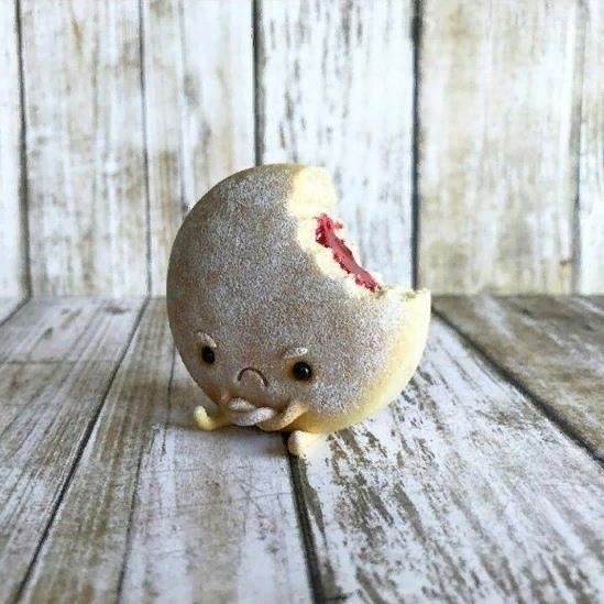 Булочка на столе вдруг заворочалась и села на попку, сложив свои лапки. Насупленные и в пудре бровки и грустная улыбка выражали свое недовольство булочки.