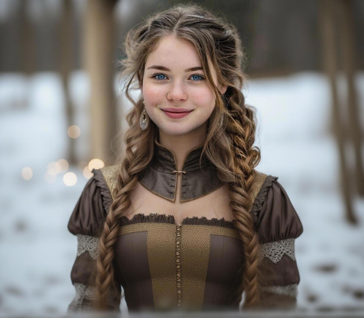Тут, как мне кажется, вот прям она-она, но вот одежда.... Я не знаю, почему мой верный ИИ вообразил, что это соответствует определению "средневековье"?))