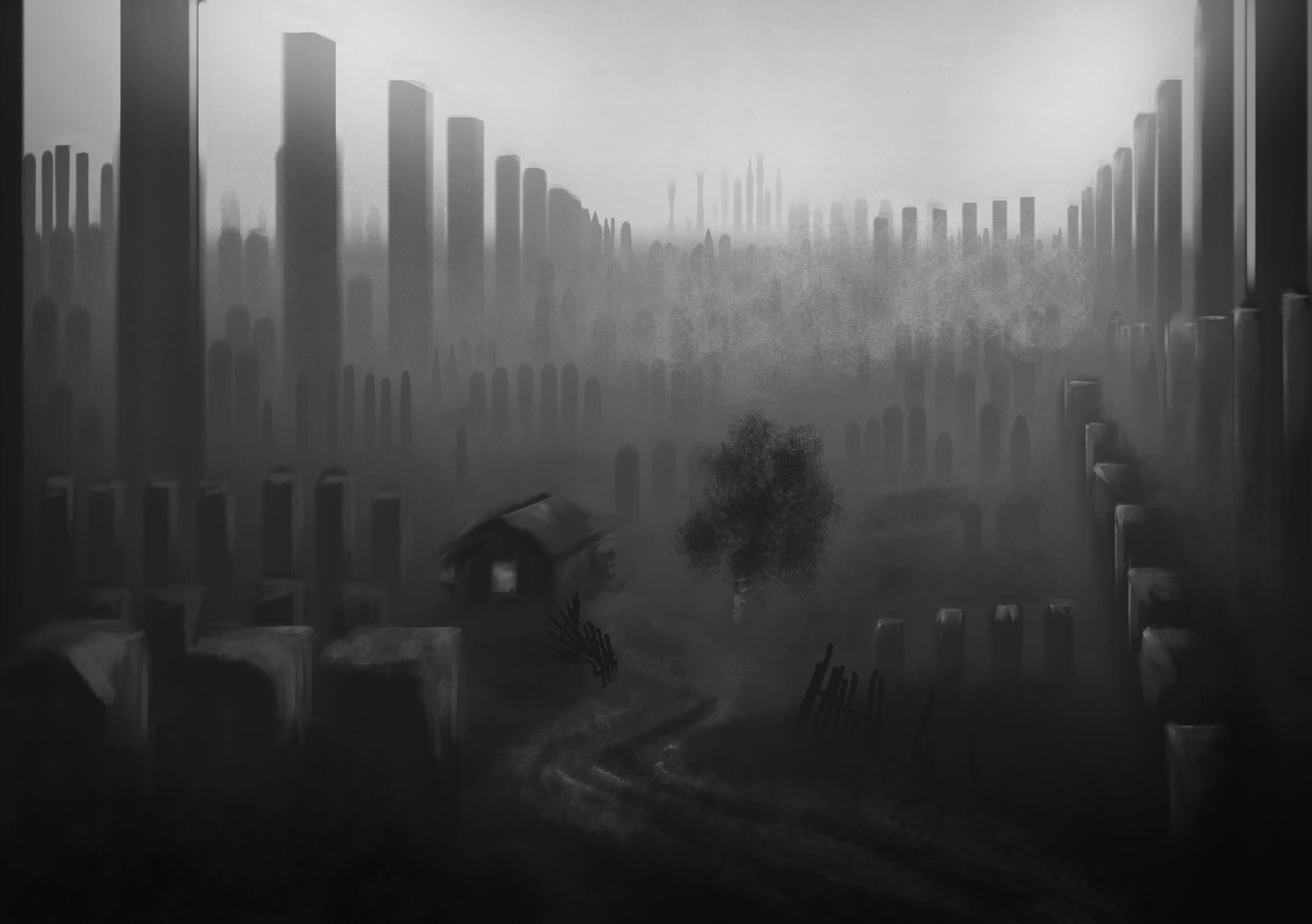 В ходе проработки концепция менялась, наверное, раза три или четыре. Изначальная идея заключалась в создании сеттинга, который не был бы похожим вообще ни на что - смешать современные технологии и культуру Шумеров и Аккадии. Дальше пошли смотреть в сторону Ар-Деко, поняли, что Биошок уже существует. Искали вдохновение в "Навсикае из долины ветров". В конечном итоге, ответ оказался ближе, чем мы искали. Я и Андрей, изначальный художник проекта, посмотрели работы Тарковского. И понеслось.