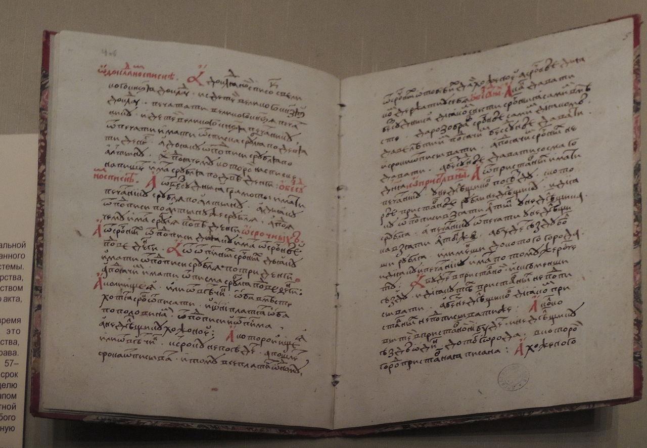 Это судебник Ивана III, конец 15-го века. Вы много поймёте в тексте? Хотя вот адаптированный перевод: