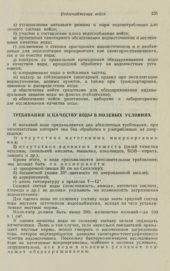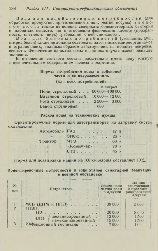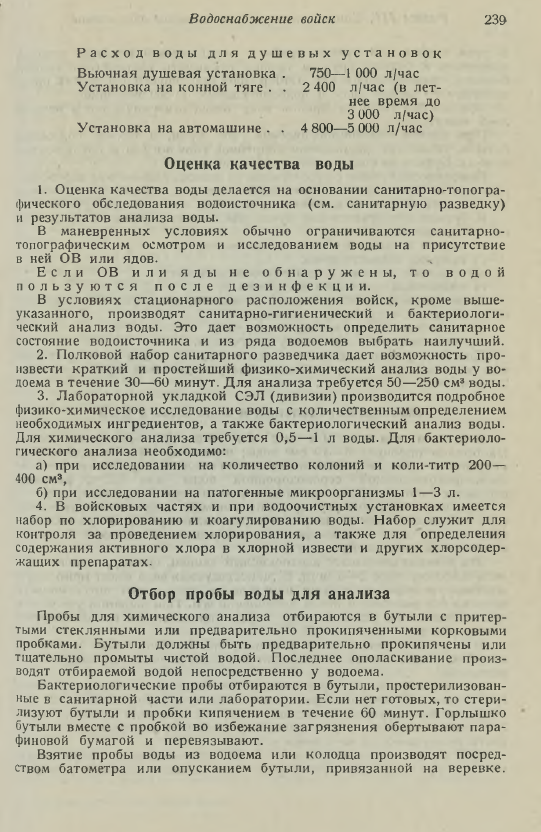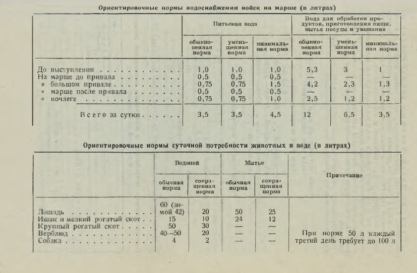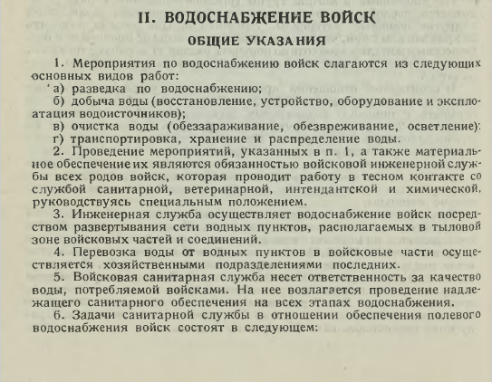 Перевозкой занималась транспортная рота полка “по возможности”. А теперь - к главному, первой половине раздела “Водоснабжения войск” из замечательного “Военно-санитарного справочника” от 1941-ого года.