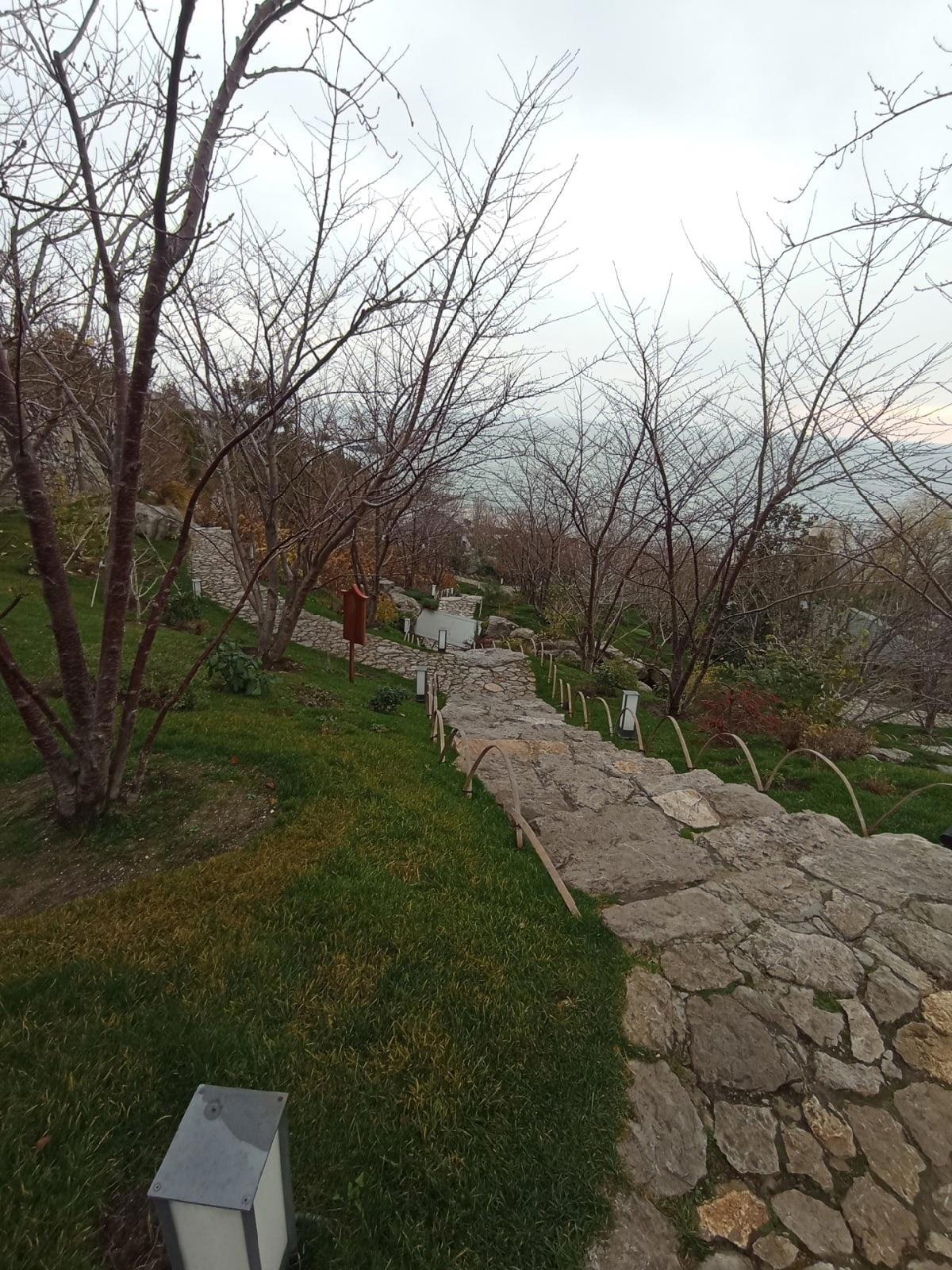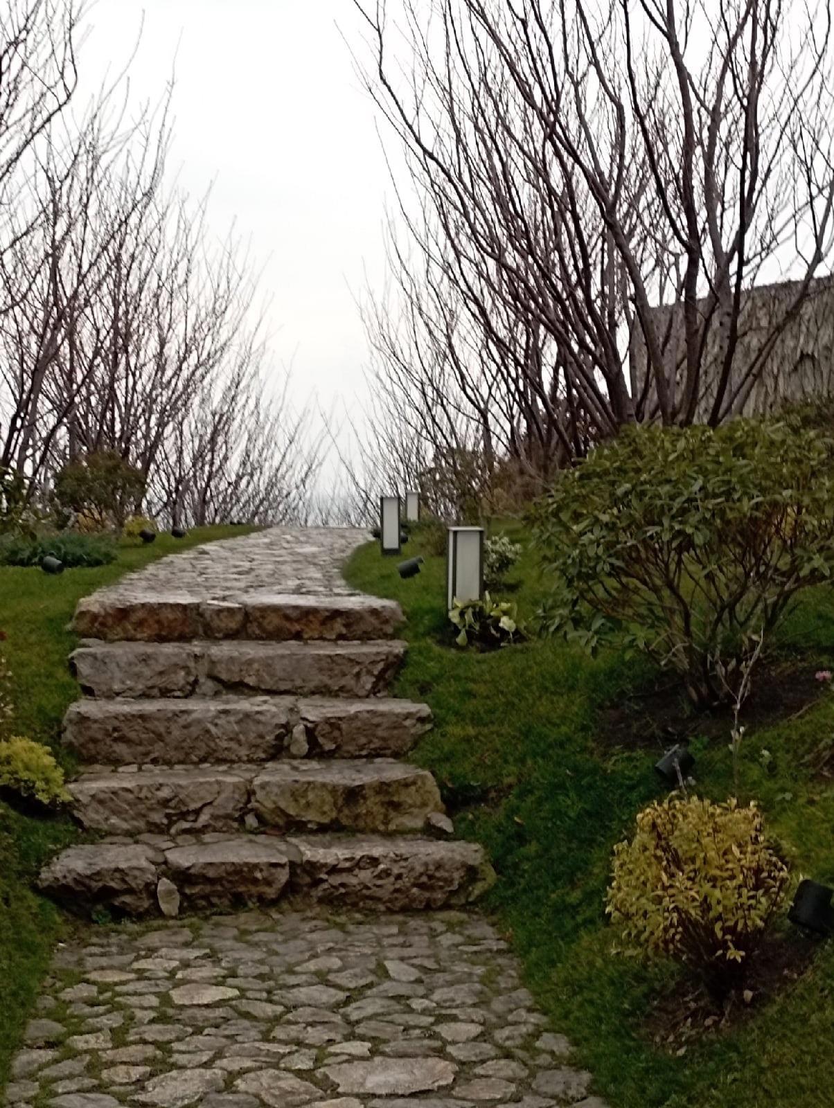 А есть и кусочки сада, где предупреждают, что это вообще частная территория. А по дорожке над Випами думали не пройдём. Так скользко. Там надо босиком ходить. Даже в кроссовках несколько раз подвернули ноги.