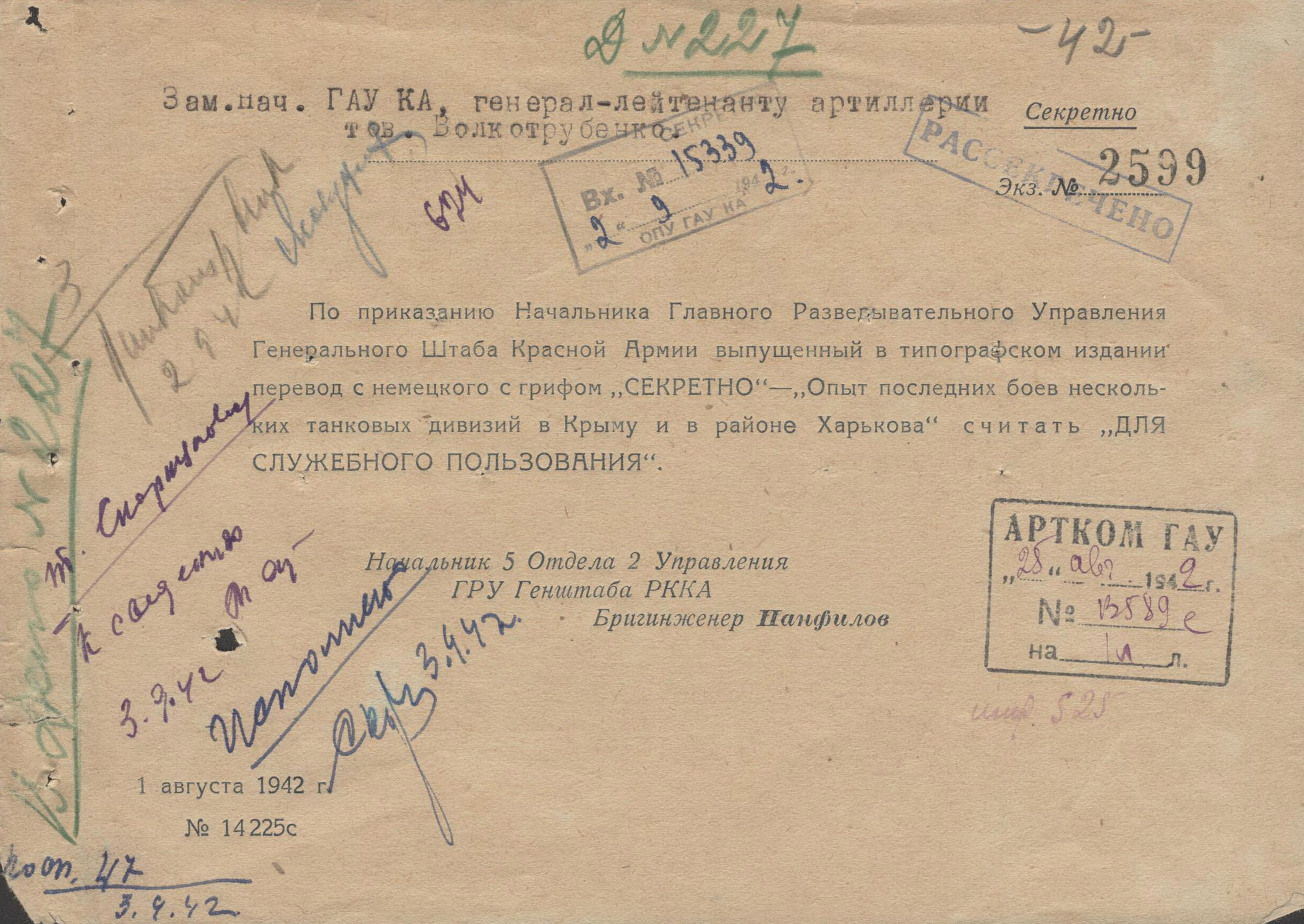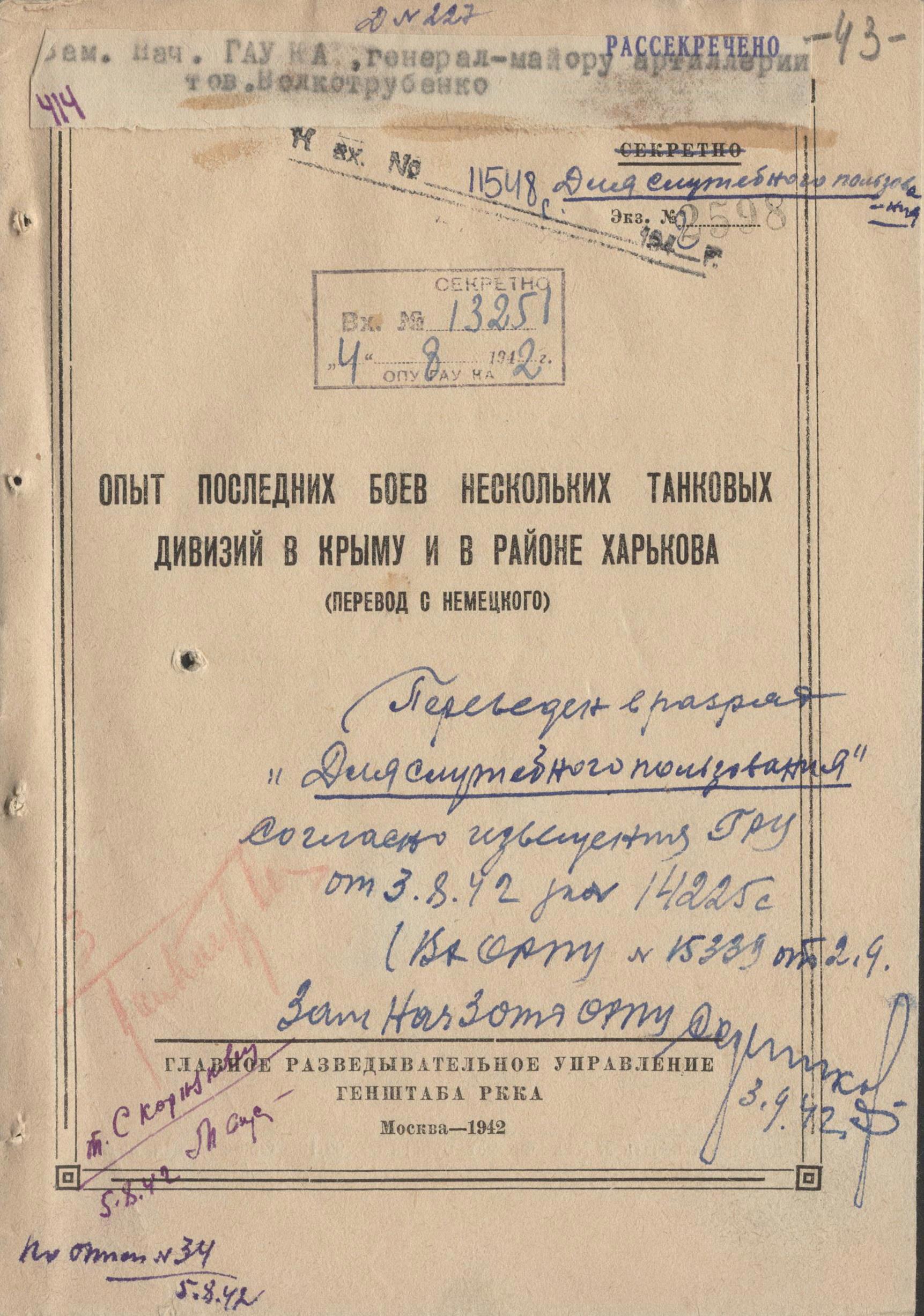 "Опыт последних боёв нескольких танковых дивизий в Крыму и в районе Харькова". Немецкая брошюра