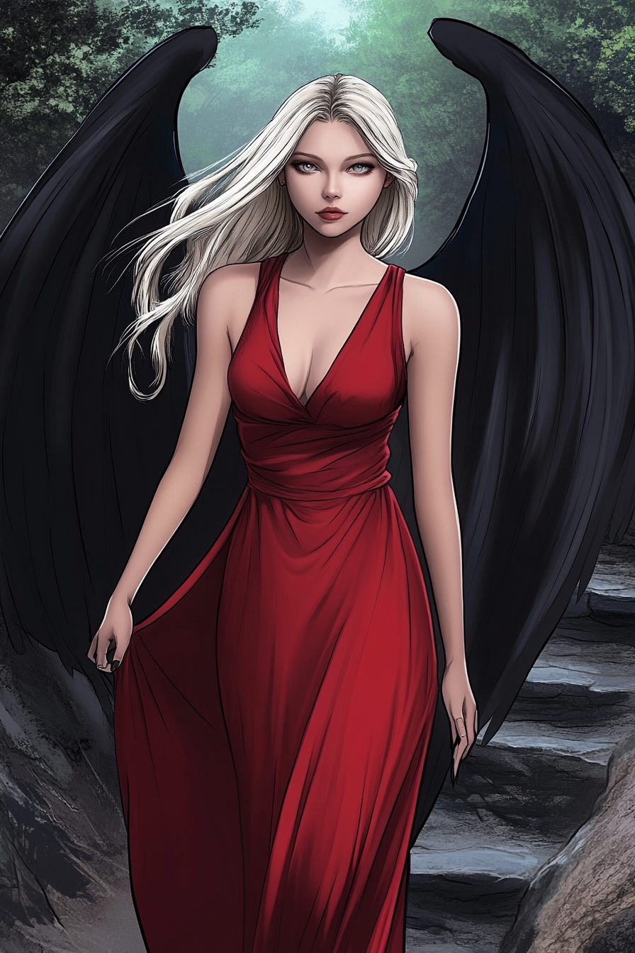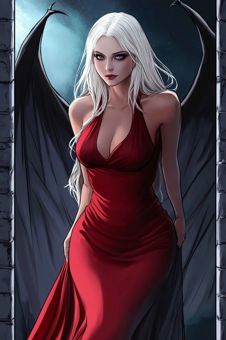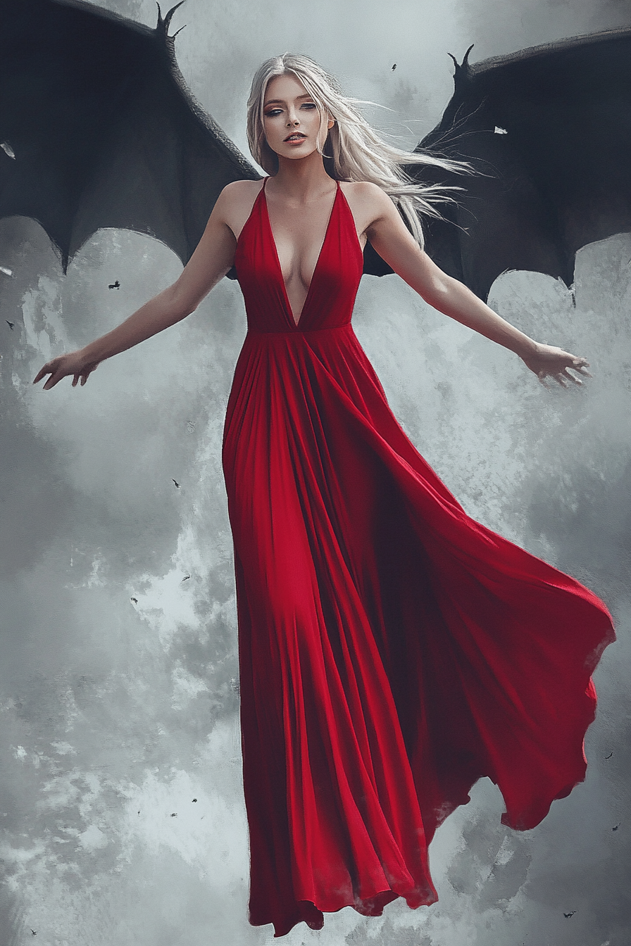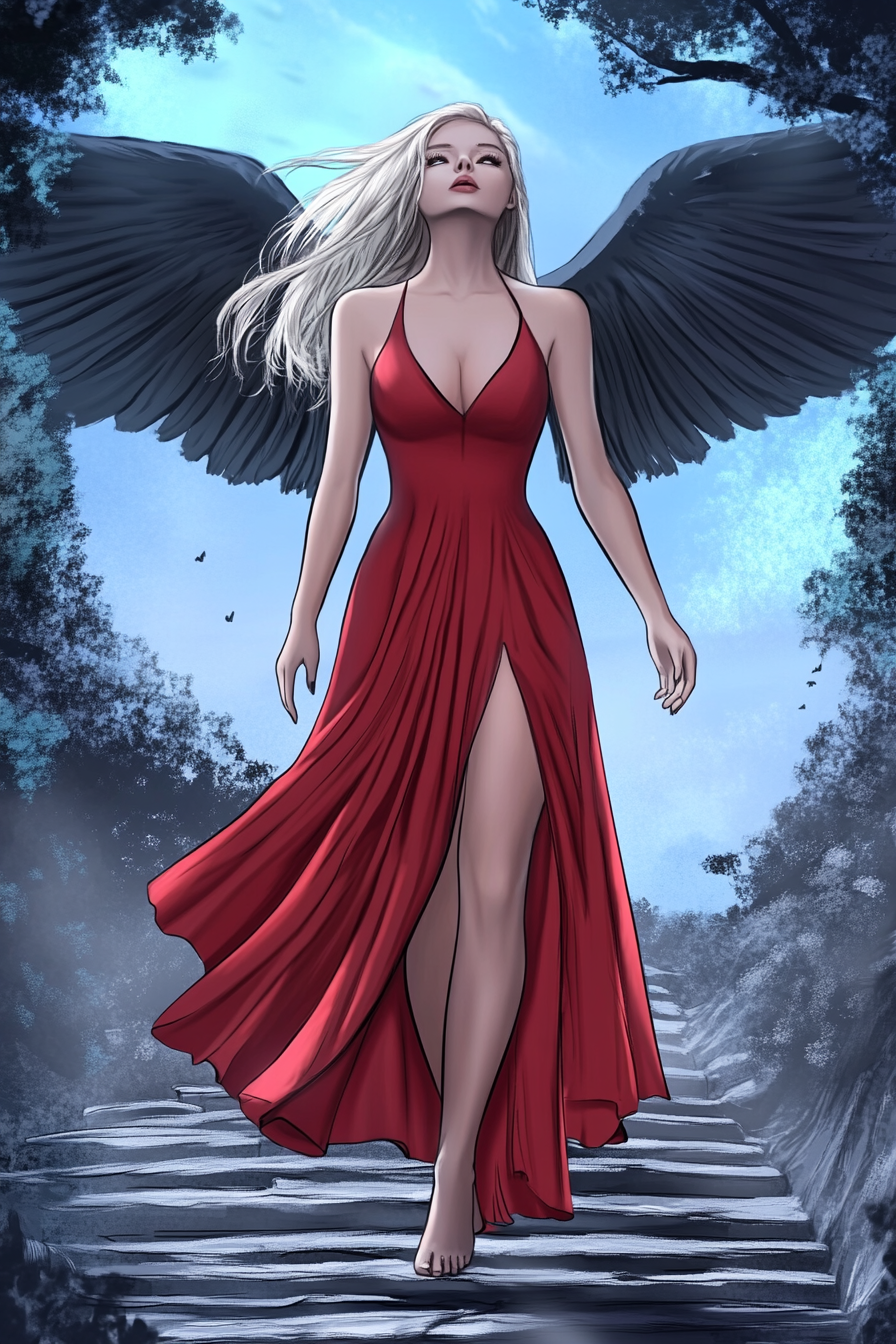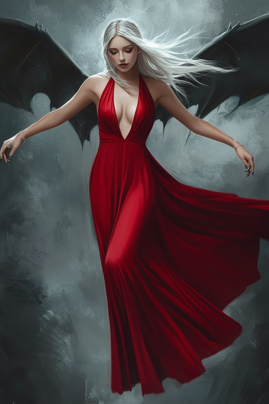 Тут существовала проблема. Не выходило нормально описать платье. Как бы не старался, выходило нечто не то. Даже попросил помощи у знакомого превосходного художника. И снова мимо. А потом я вспомнил выставку оригинальных вещей. Красная ковровая дорожка.
