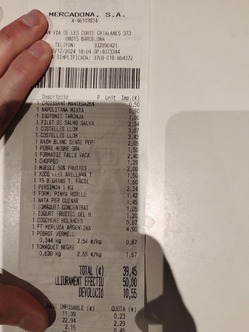 Конкретно я сегодня сходил в Меркадону и вот что притараканил: