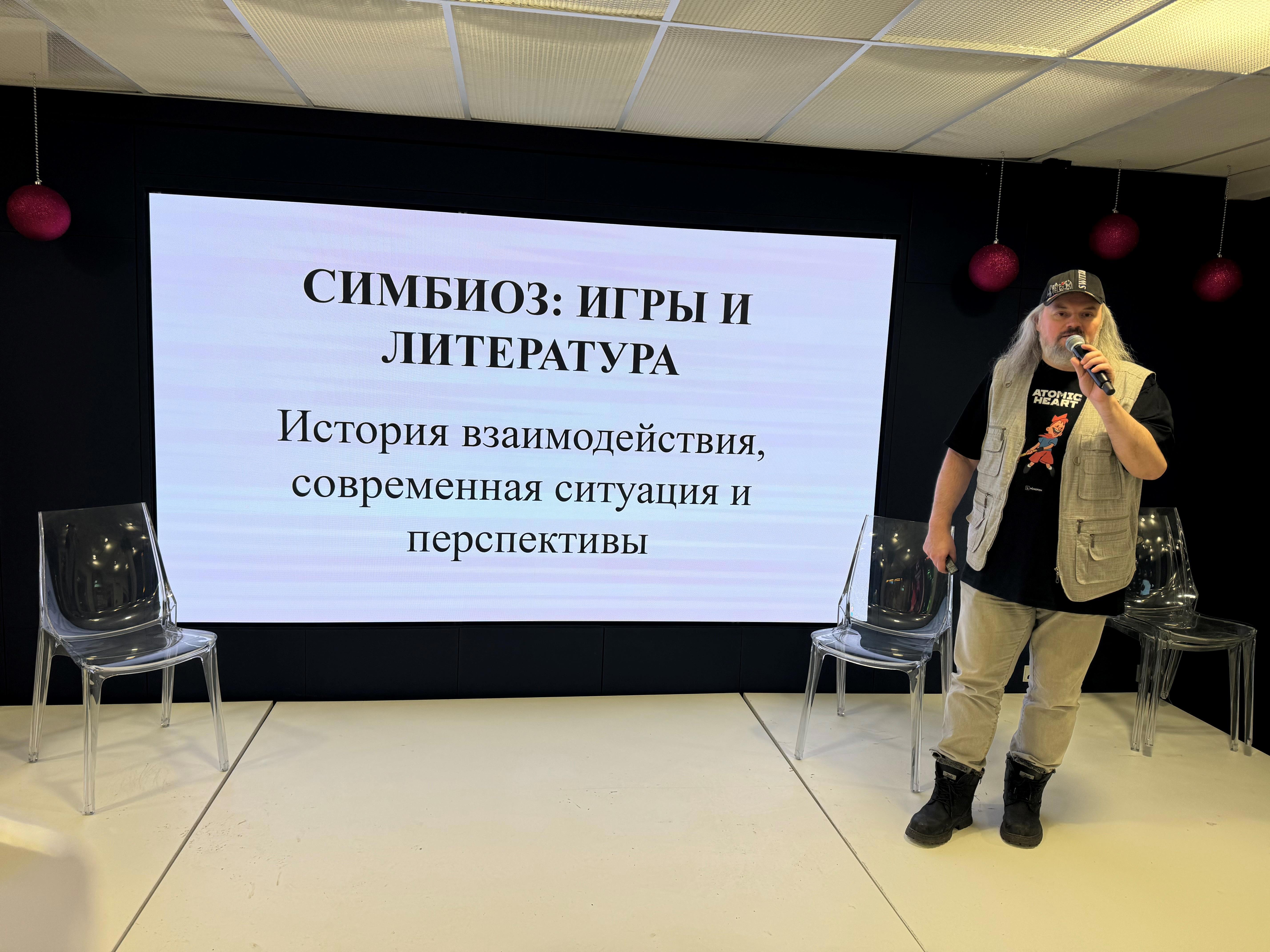 — А финальным аккордом главной сцены стало выступление Сергея Чекмаева «Симбиоз: игры и литература», посвященное тому, почему читатели выбирают не только средневековые или постапокалиптические миры, но и миры игровых вселенных, убийство боссов и покорение вершин.