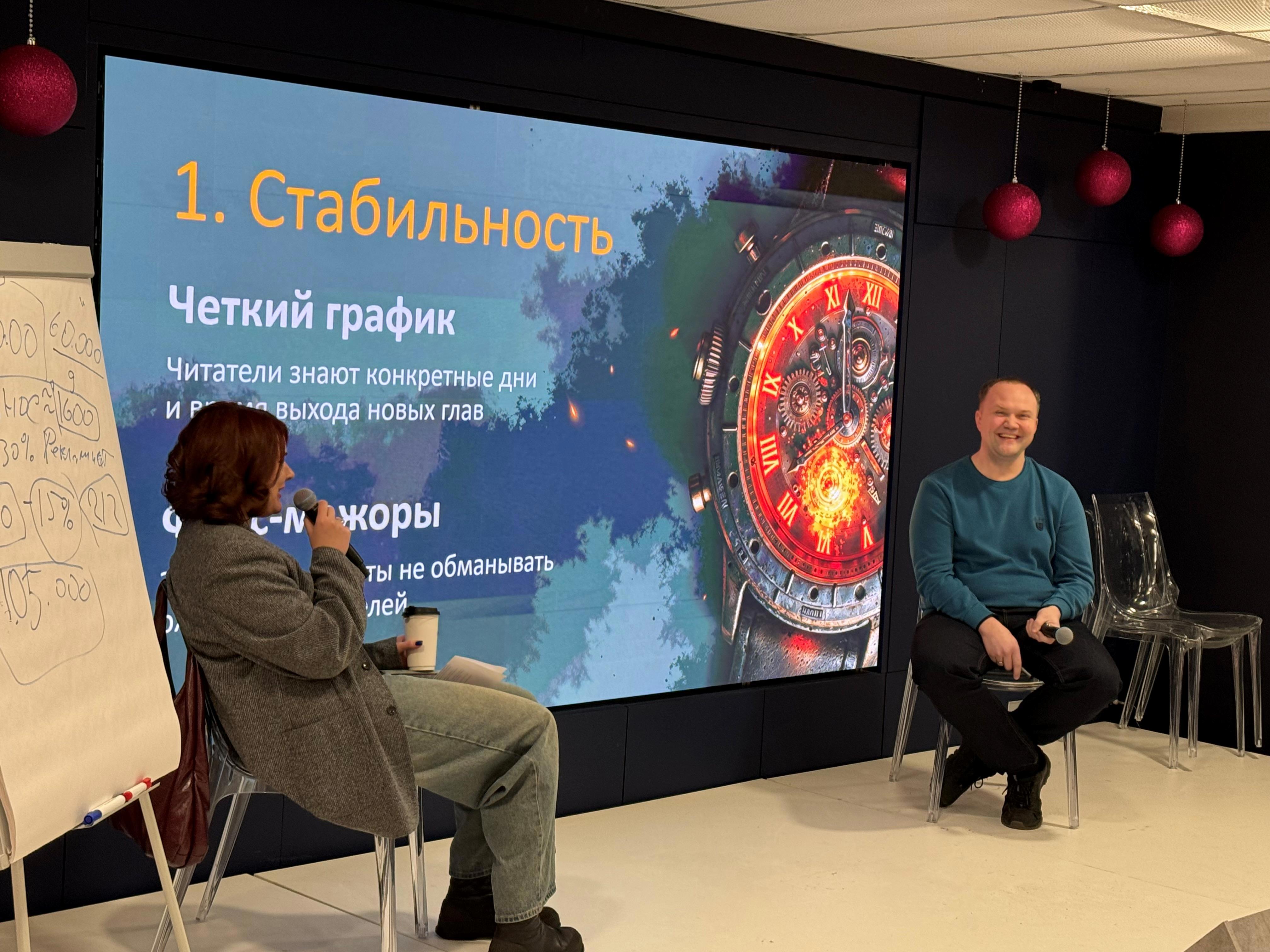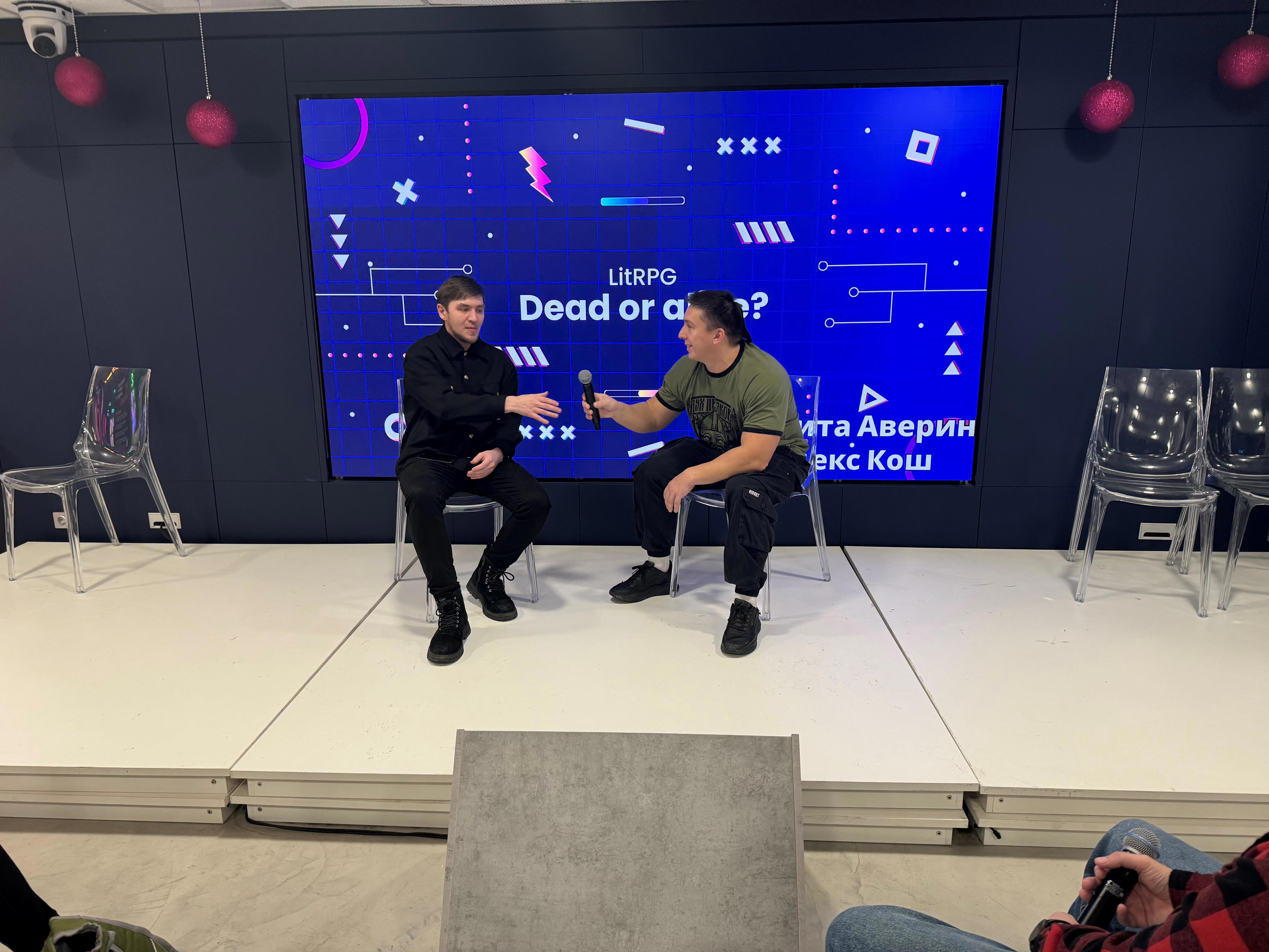 — Продолжили лекционную часть Никита Аверин и Алекс Кош, рассказав про состоянию жанра LitRPG в России.