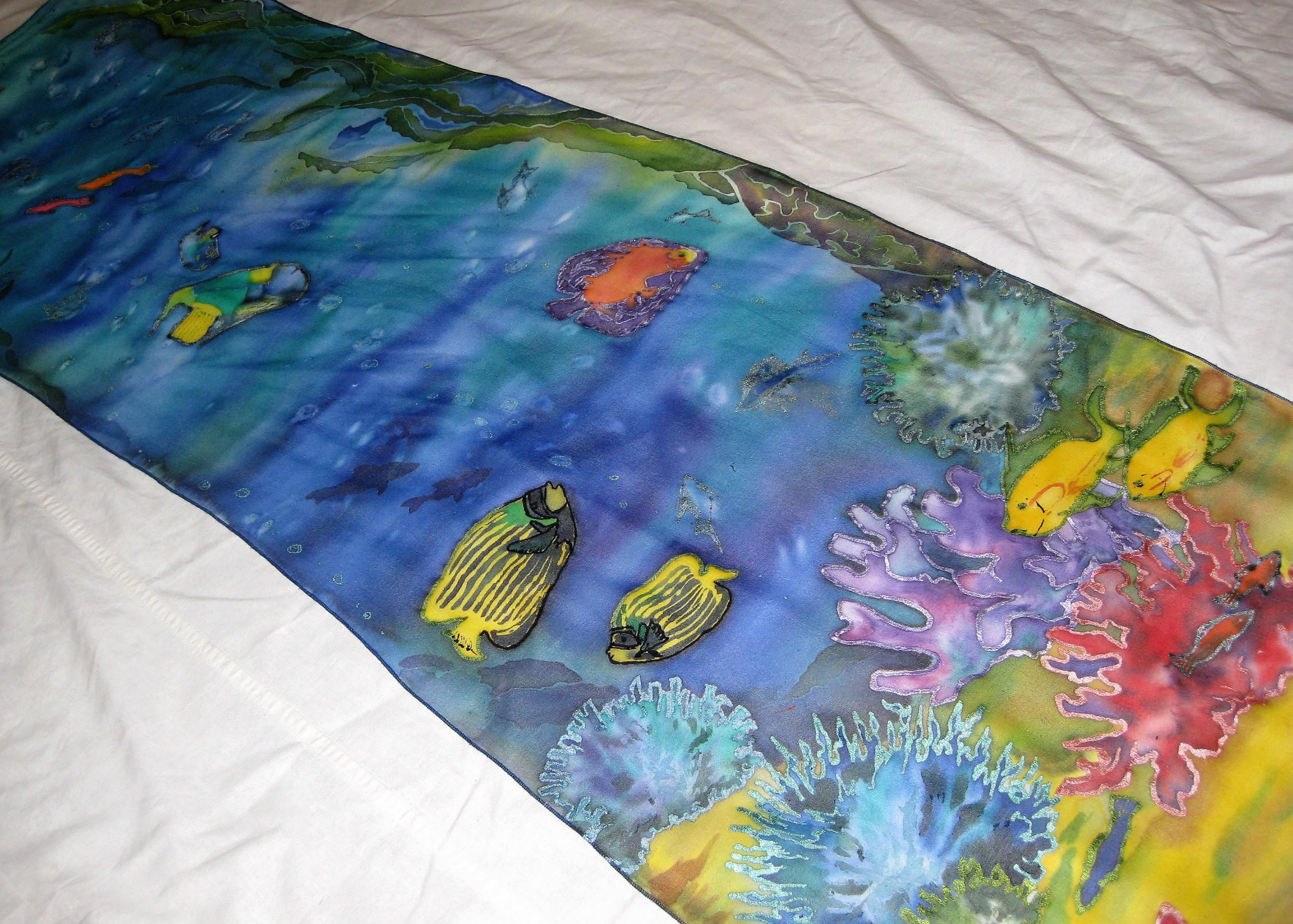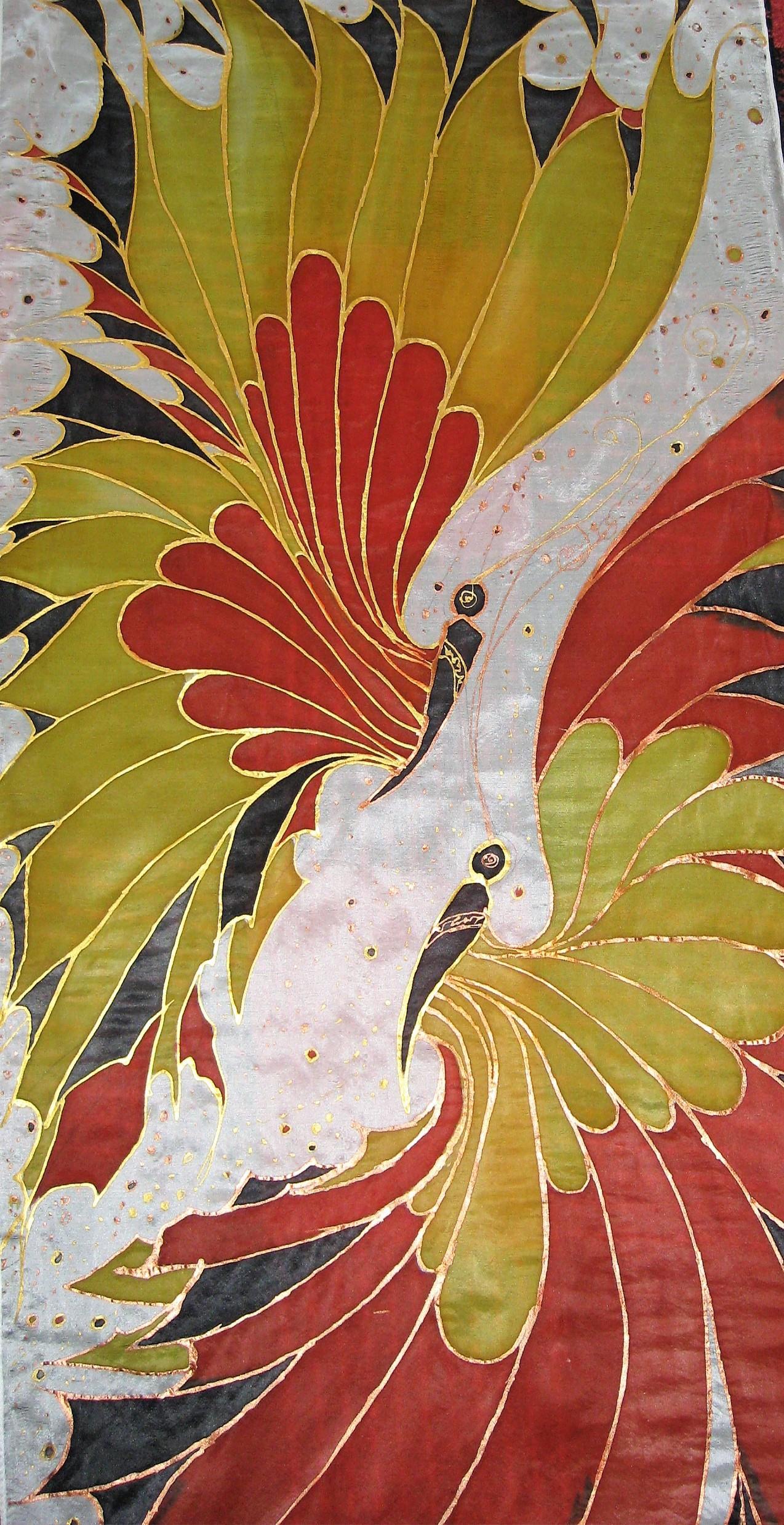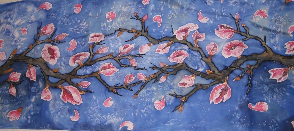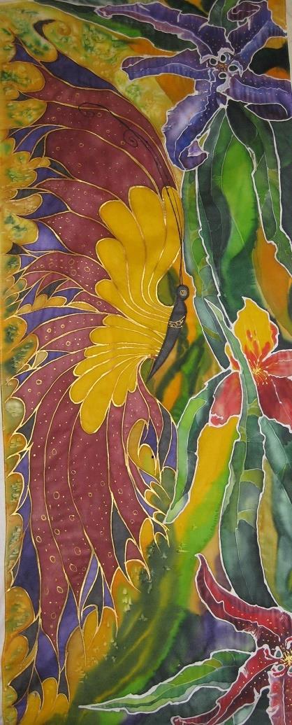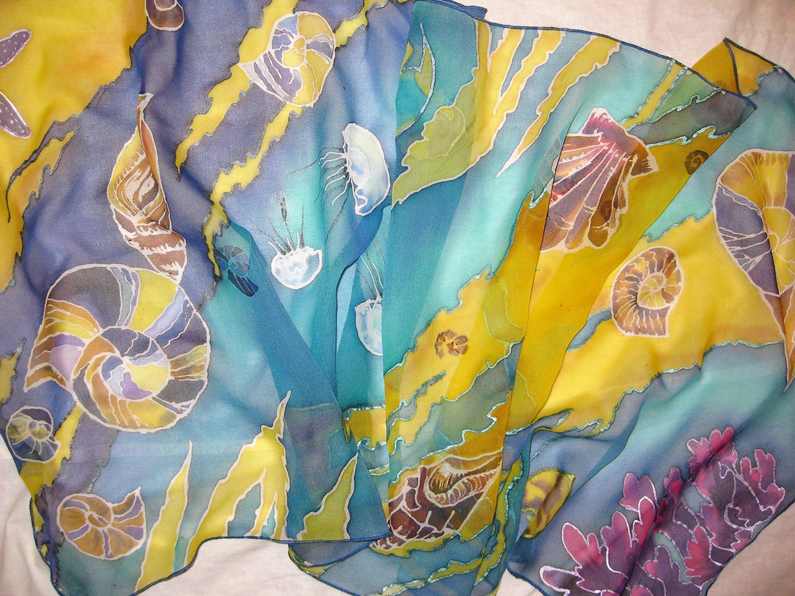 Автор: Annaтехника - холодный батик, краски закрепляются утюгом, после чего изделие можно стирать