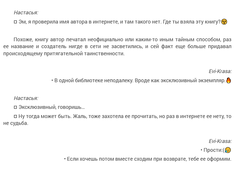 Сама я такую возможность наковыряла, когда в феврале писала мини-роман "Нимфа из реальности". Пожалуй, это одна из первых историй, которую я пробовала писать в тесном переплетении с жанром слр. И были там моменты, когда смайлики бы пригодились: герои переписывались в соцсети и, соответственно, смайлики выглядели бы там уместно.