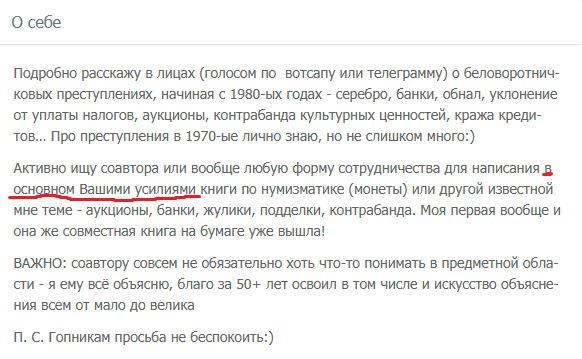 Мне повезло, что тема не заинтересовала и я сразу отказался. А если бы согласился? Обрёл бы я счастливое соавторство (о котором в разделе «о себе» указано, что писать будете именно вы, а он лишь наставлять)?