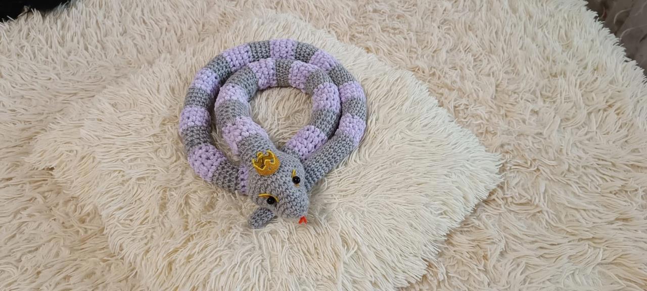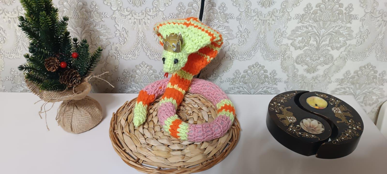 Вот такая мирная змея. Я ее связала в конце ноября. А вчера вдруг захотелось связать королевскую кобру.