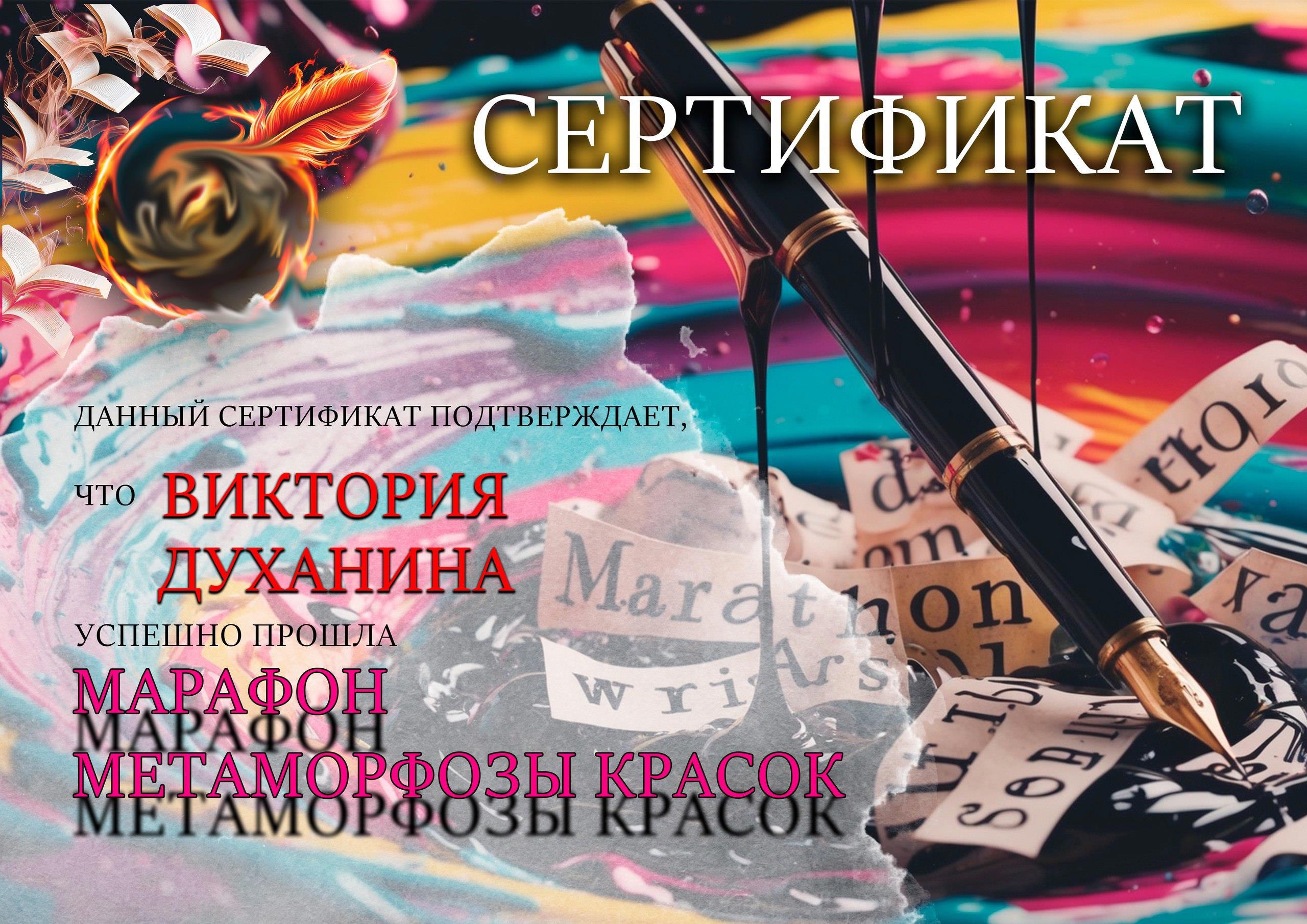 P.S. Куда я пропадала? Участвовала в писательском марафоне, это был такой себе опыт с кумовством, феерией самомнения и высокомерия, даже вспоминать не хочется. Но безвкусный сертификат я вам покажу)))