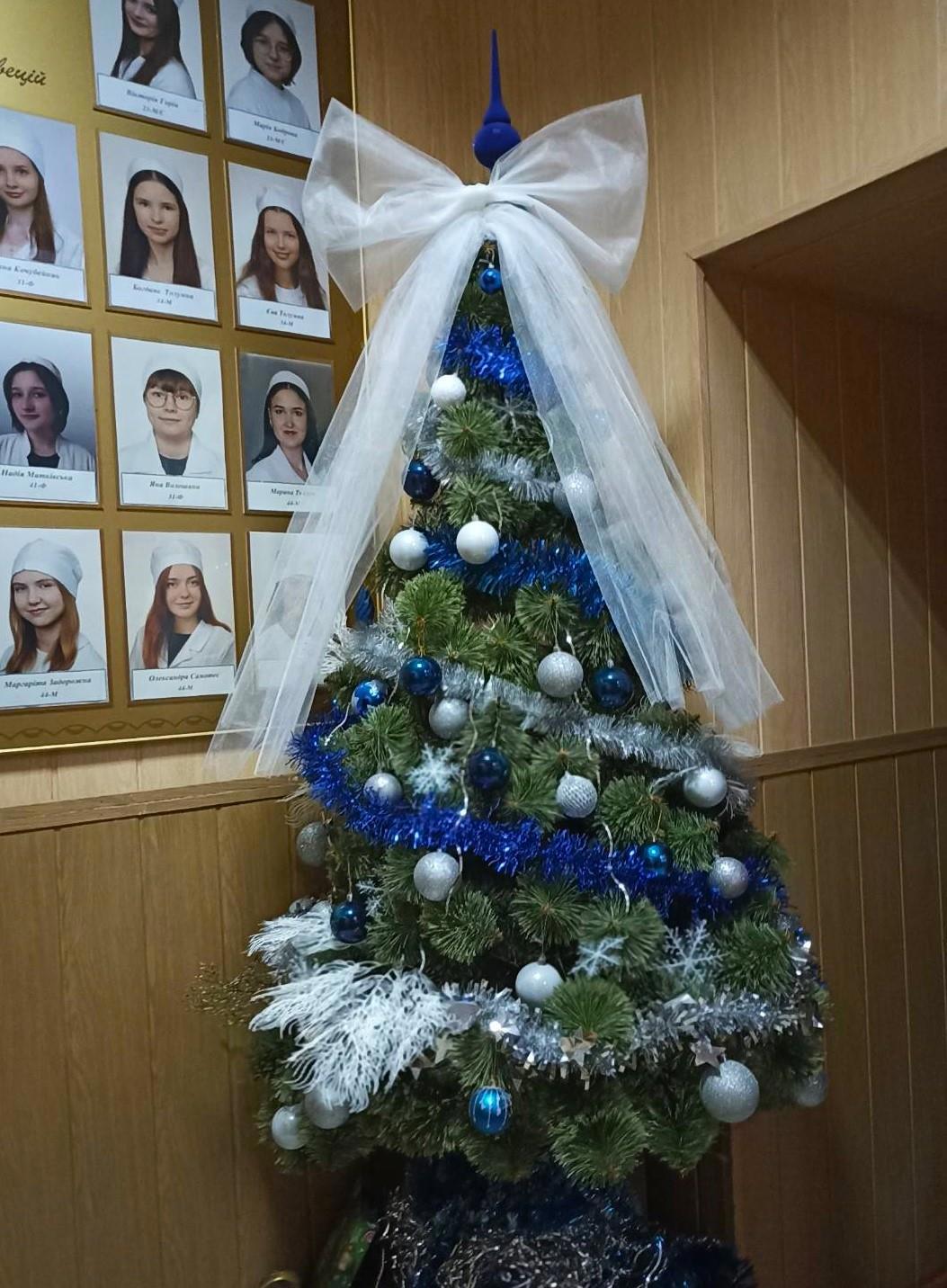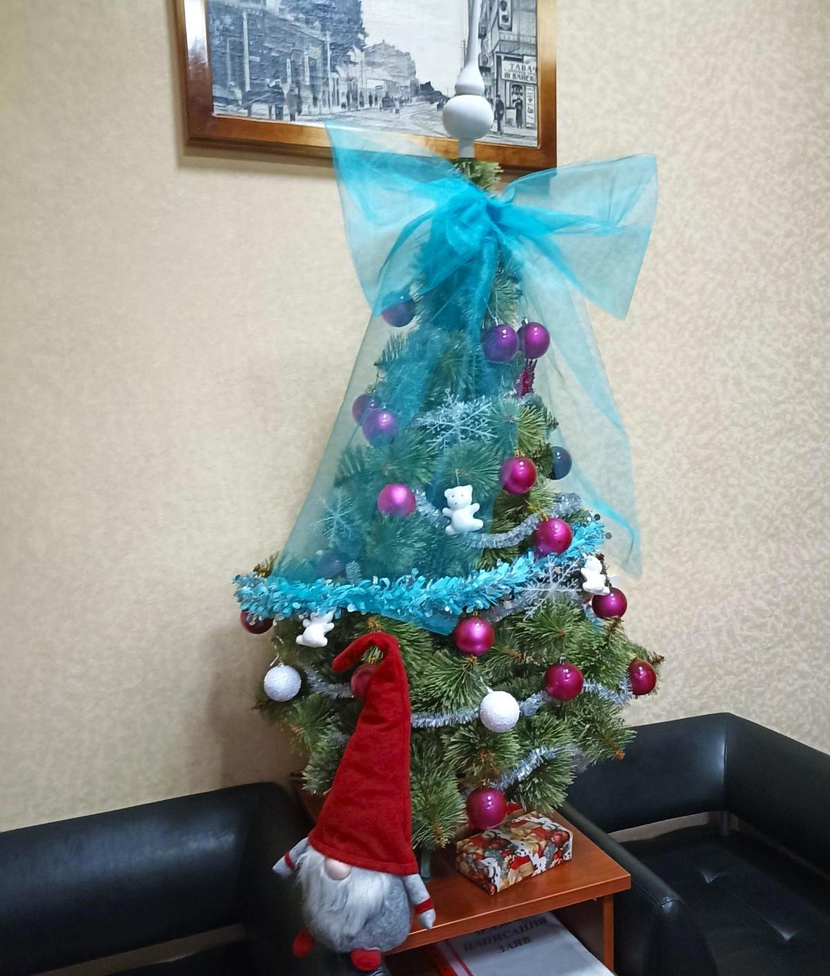 В этом году вдруг стало модно вязать на верхушки огромные фатиновые банты, к примеру на работке повязали так: