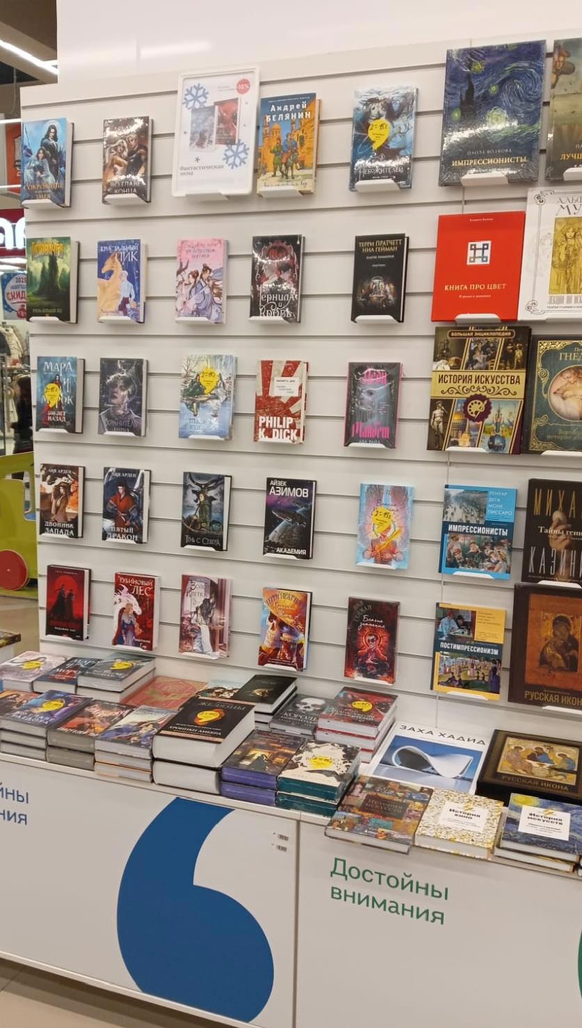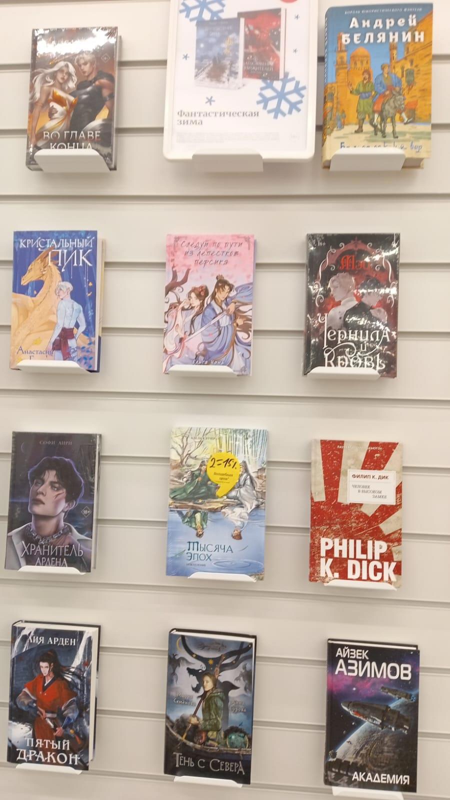 И кстати, получила чудесный подарок, случайно зайдя в книжный магазин. Моя книга стоит на почётном месте, украшая стенд рядом с книгами Головачёва, Азимова и многими другими!