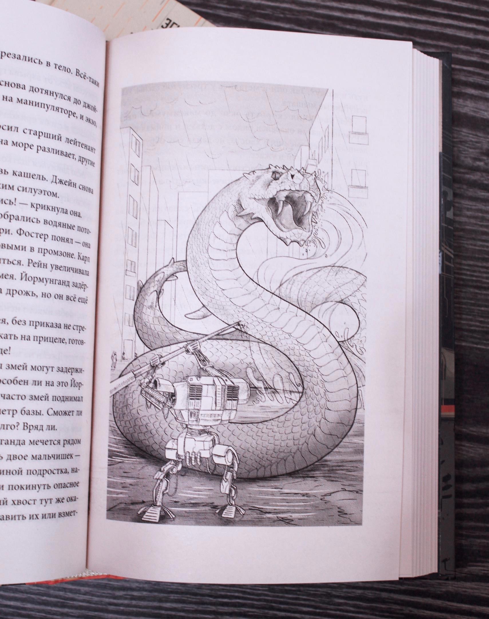 Здесь сцена из главы "Рагнарёк", где Фостер в грузовом экзоскелете сражается со стадвадцатиметровым змеем Йормунгандом посреди оживленного города.