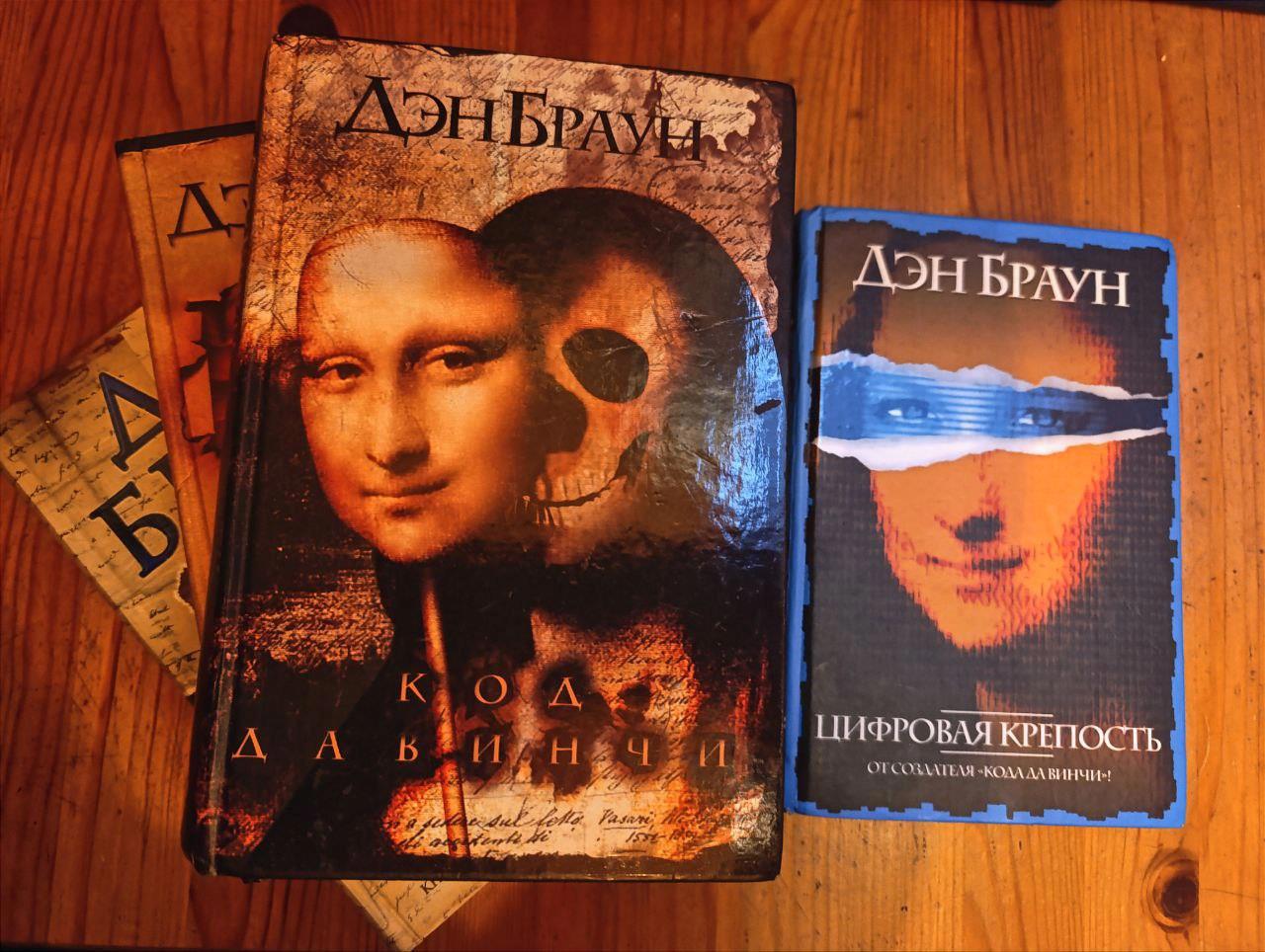 Последняя была куплена «Цифровая крепость» и только сегодня я узнала, что написана она раньше «Кода да Винчи». То есть роман, ранее написанный продали вдогонку к раскрученному произведению. Хотя честно скажу «Цифровая крепость» — сильная штучка и без надписи: от создателя «Кода да Винчи»