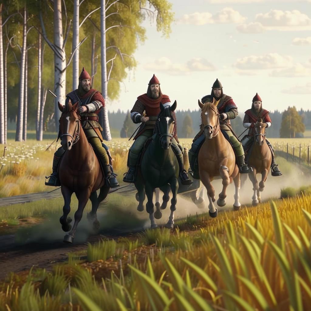 На первой картинке группа Кара пытается добраться до родных мест. Воины получились так себе, но березки славянский дух передают хорошо.
