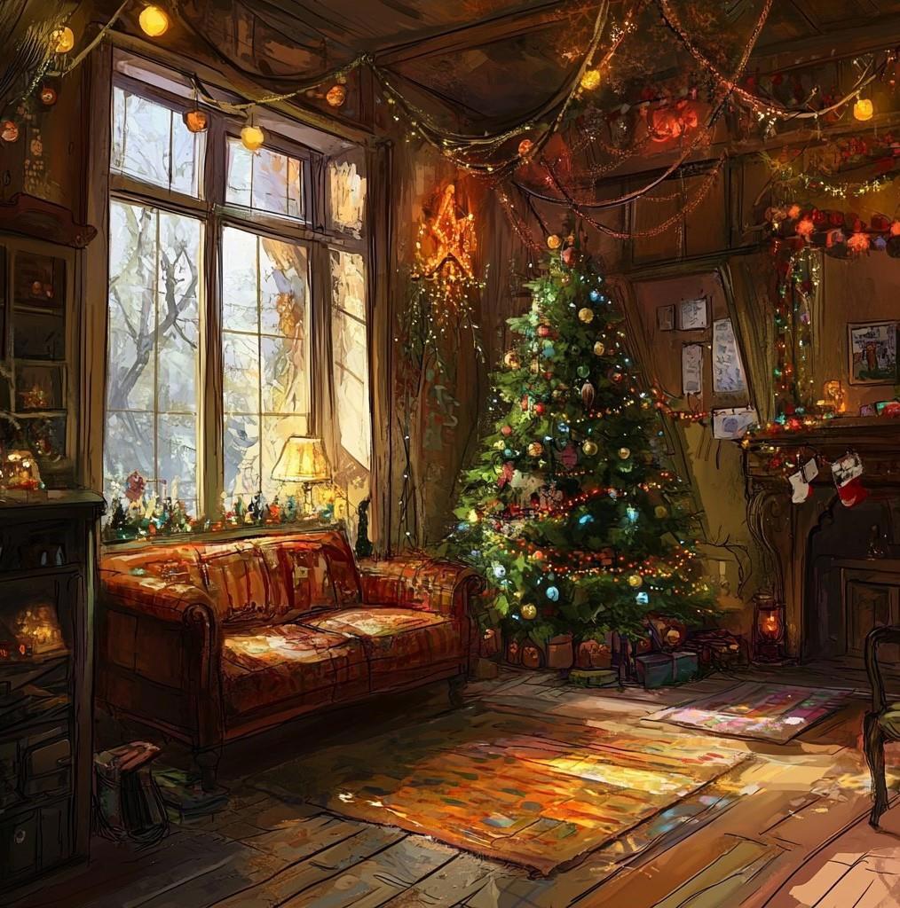 Вечер был тихий и спокойный. За окном медленно опускались снежинки, а вдалеке зажигались огоньки домов. Кто-то уже украсил свой дом и видны были разноцветные блики, а кто-то продолжал откладывать украшение своего очага.