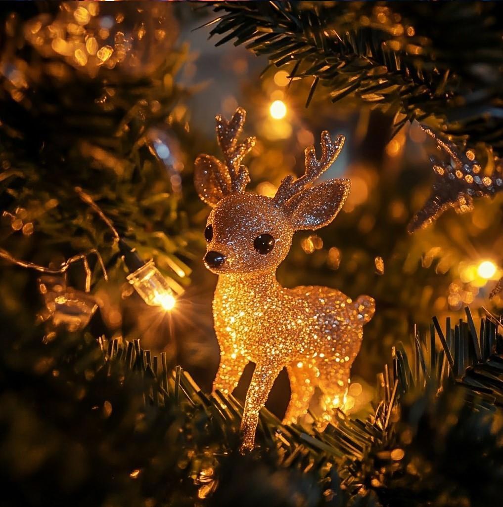 *Ворон, закончив всё украшать спускается на землю, зажмурившись втыкает гирлянду в розетку и.... радуется новогодней допросной.