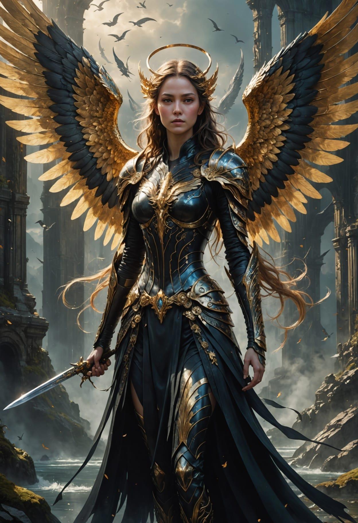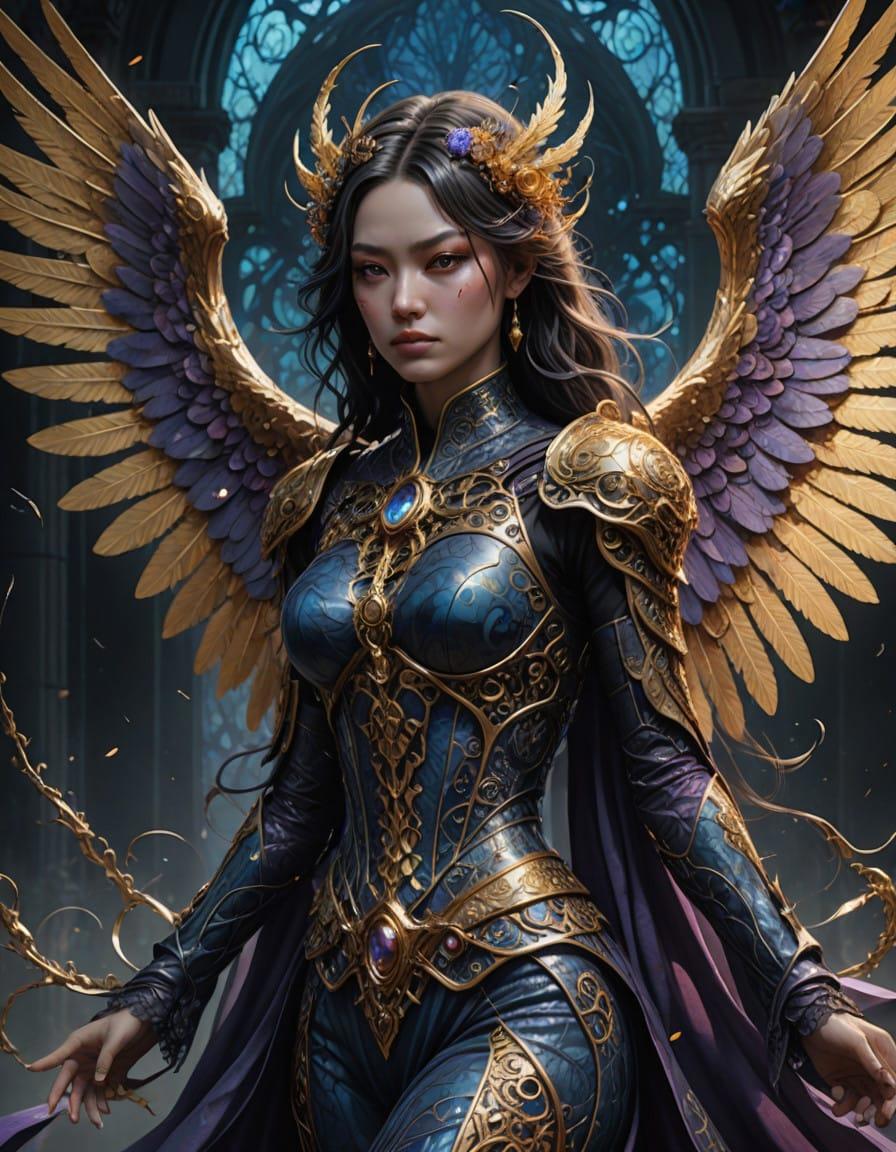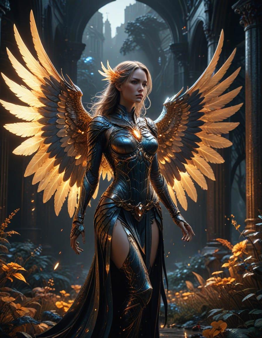 a portrait, beautifull, full body angelarium with big wings, 8 k, dark fantasy, shining light, golden our, by Alex Gray, Android Jones, Karol Bak, Ayami Kojima, Yoshitaka Amano, Olivier Ledroit, concept art, fantasy