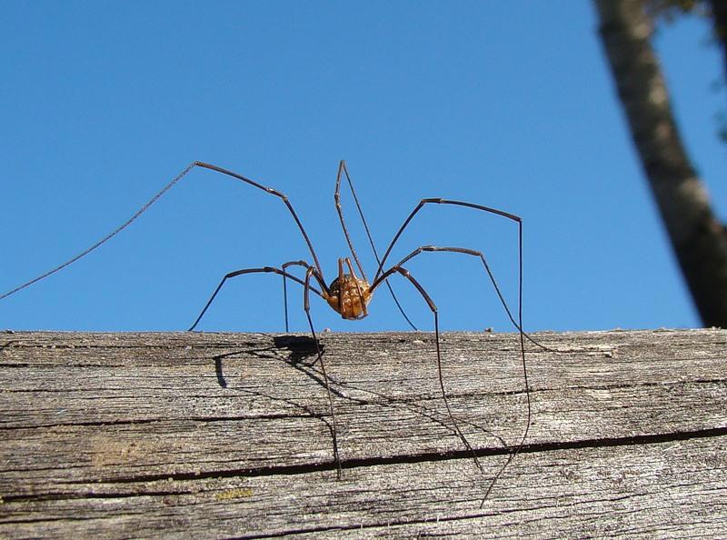Есть такой довольно безобидный, но не очень-то приятный зверь: паук-сенокосец. Фоторобот прилагаю.