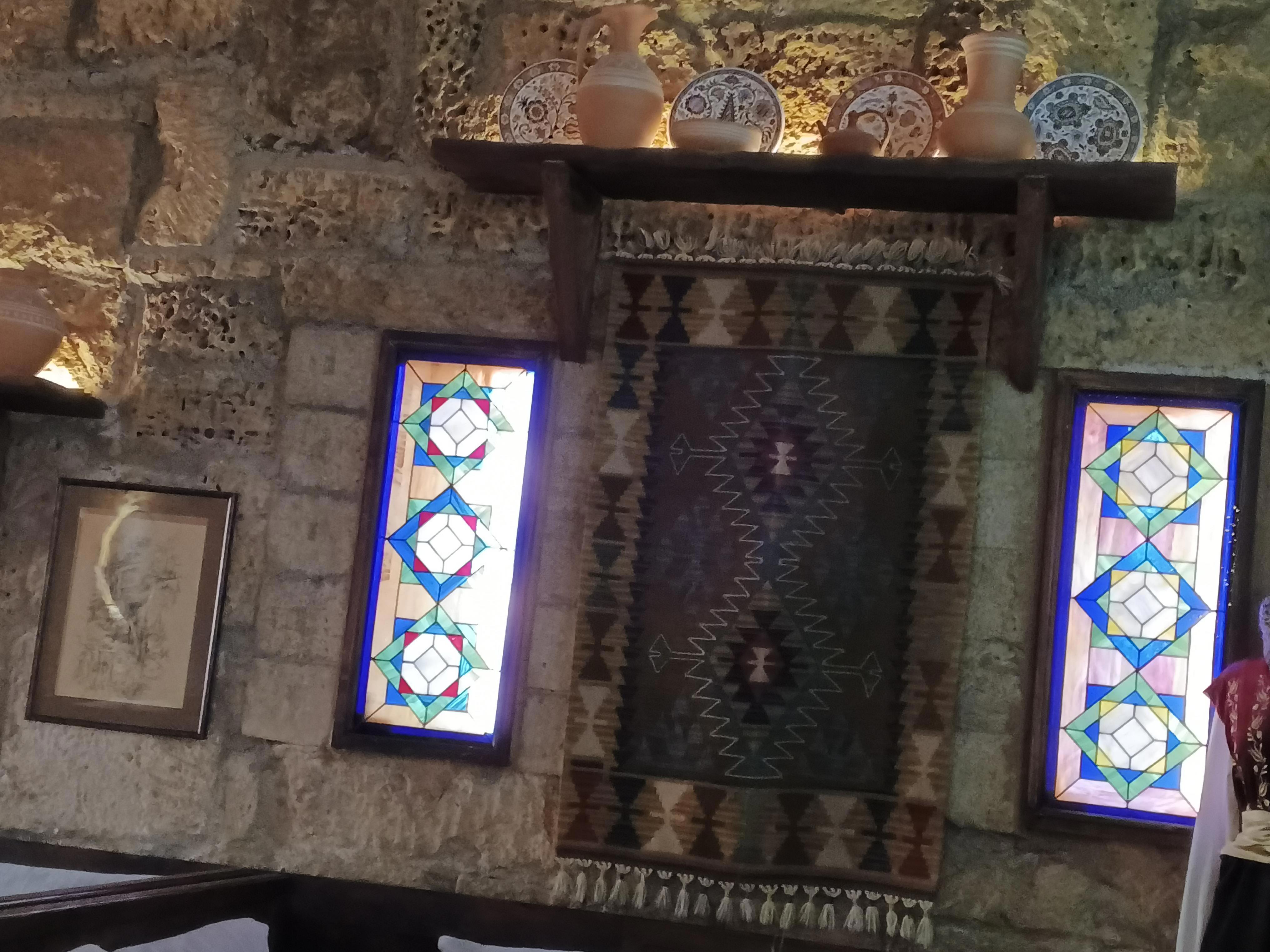 Бойницы забраны витражами, между ними ковер, не старинный, но винтажный точно. Фото Галины Малышевой.