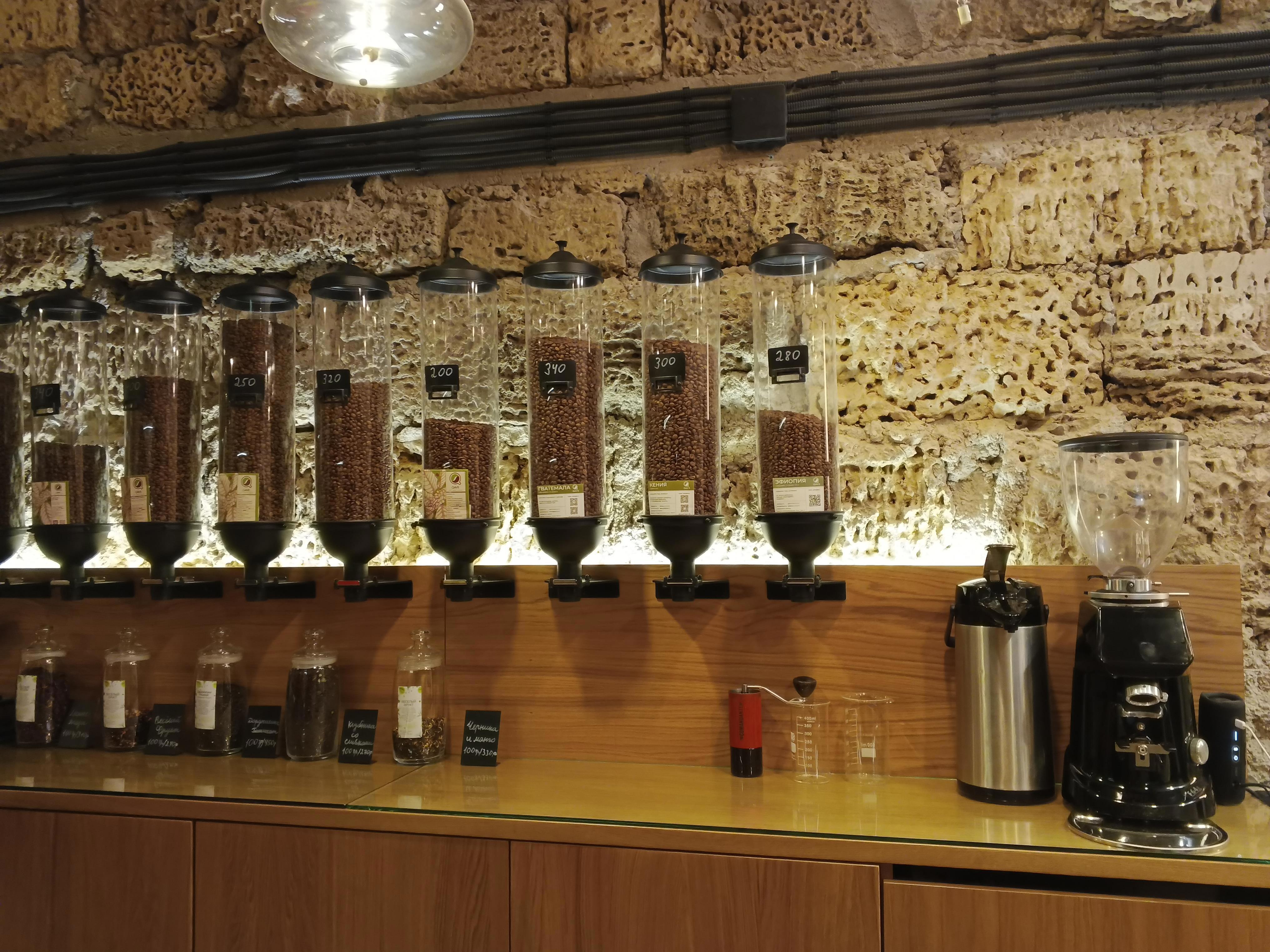 Вот в таких колбах кофе на развес. Очень удобно и стильно. Фото Галины Малышевой.