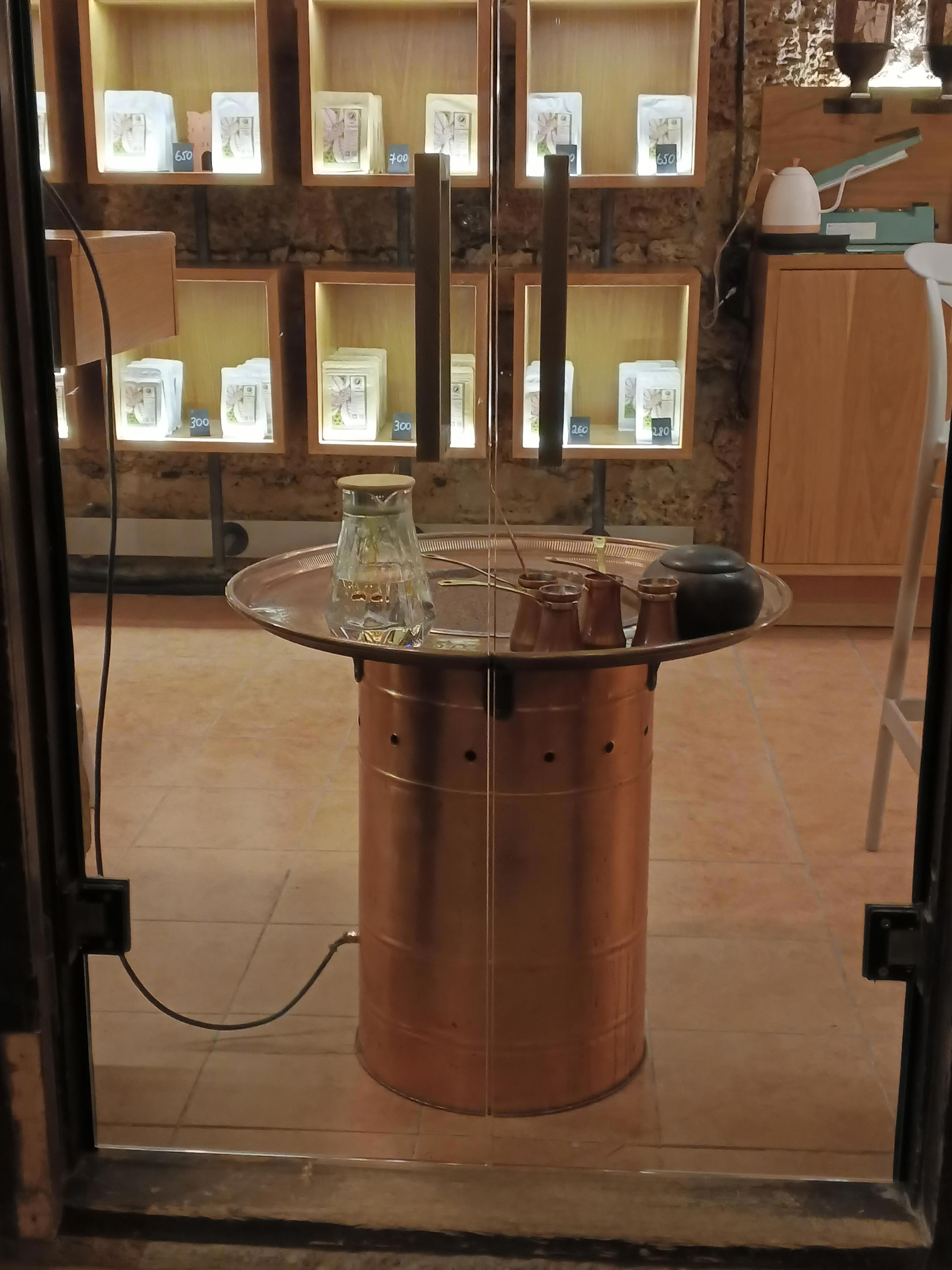 Нет, ну фотографирую я эту красоту, вижу ведь, что там явно выставлены какие-то интересные вещи, но пока не вышел молодой человек и не пригласил выпить заварного кофе на песке, до нас не дошло, что там теперь тоже небольшой филиал кафе...