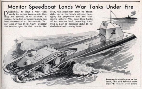 Тандем из танка и танкодесантного катера. Тут, похоже на мысль 60-х годов, уж больно танк поход на шведское чудо Strv 103. Хотя... проекты безбашенных танков были и раньше.