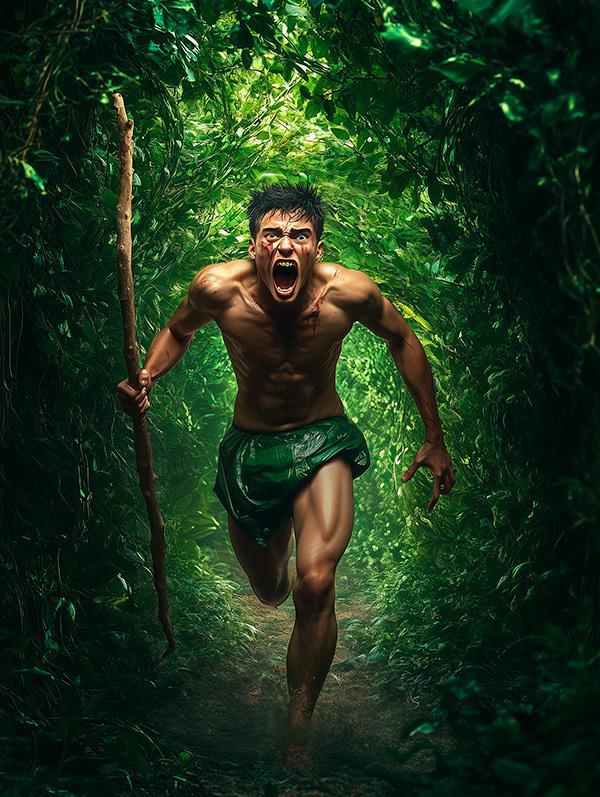 В тот же момент на меня словно что-то нашло. На мгновение забыв о смертельной опасности, я вскочил, занеся над головой, как дубину, свое деревянное копье, и с неистовым криком ринулся на тройку уродов...