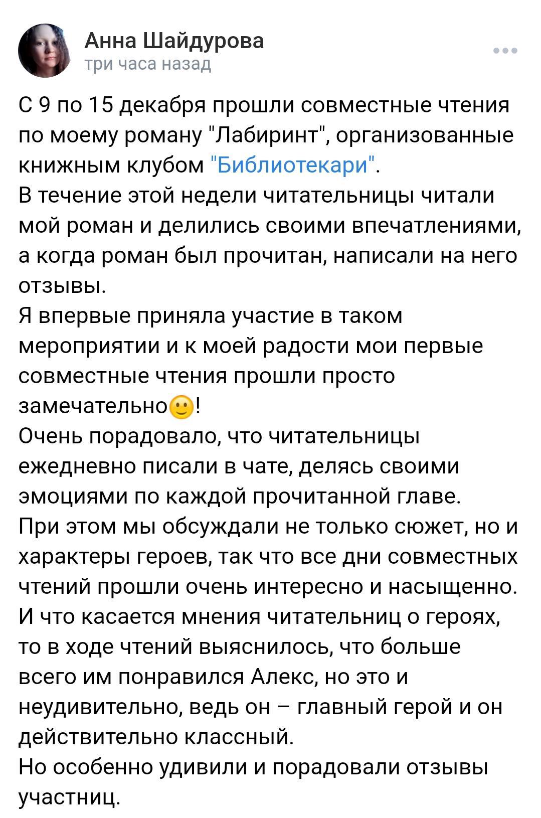 Автор: Шайдурова АннаСегодня подвела итоги совместных чтений по моей книге "Лабиринт", которые проходили с 9 по 15 декабря.