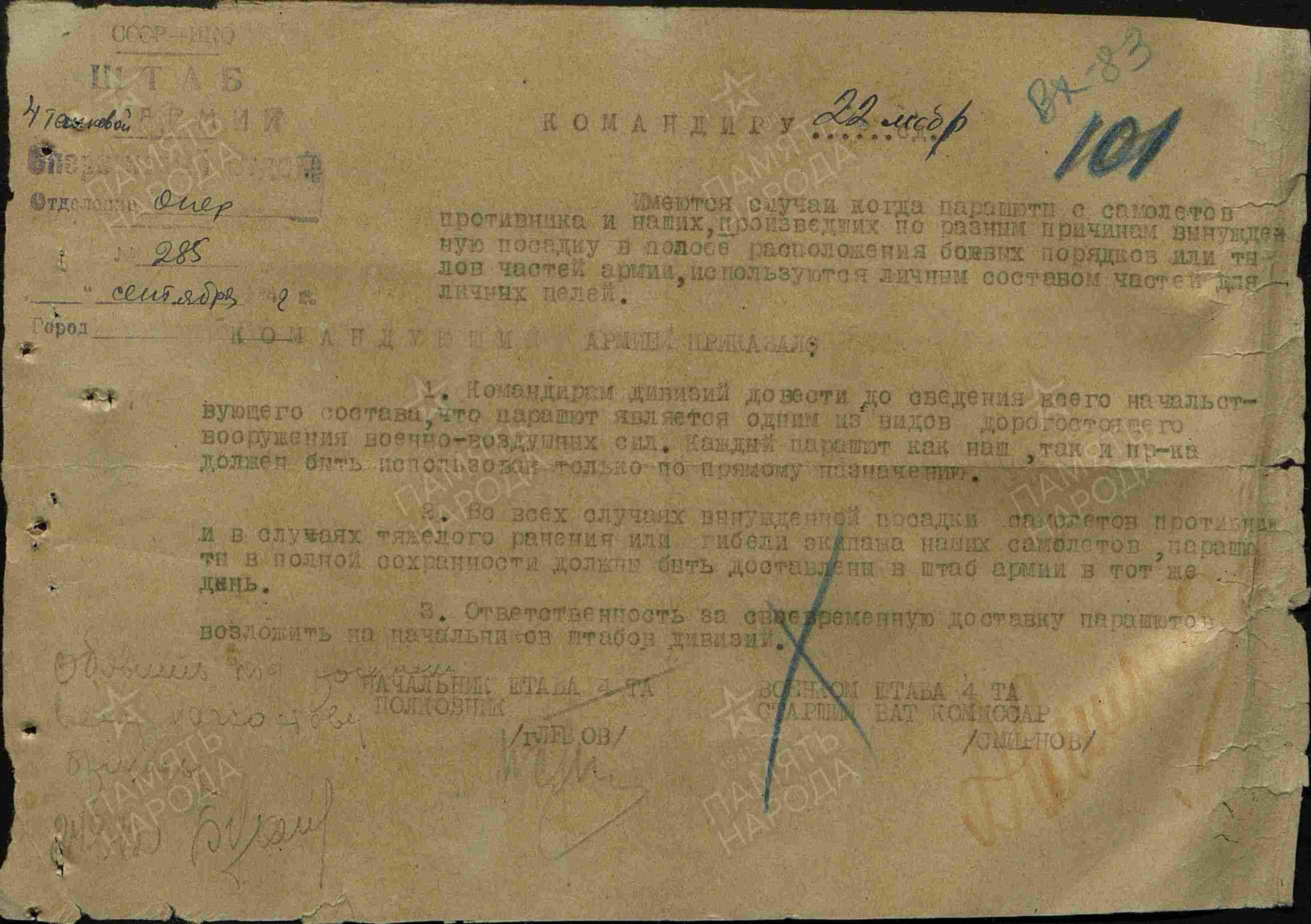 Автор: Андрей УлановКак общеизвестно, парашютный шёлк во время войны является довольно ценным стратегическим материалом. Но также известно, что некоторые изделия из него – например, шарфы – очень удобны в боевой обстановке. А поскольку люди везде примерно одинаковы, то и приказы командования танковых частей по данному поводу тоже получались похожими.