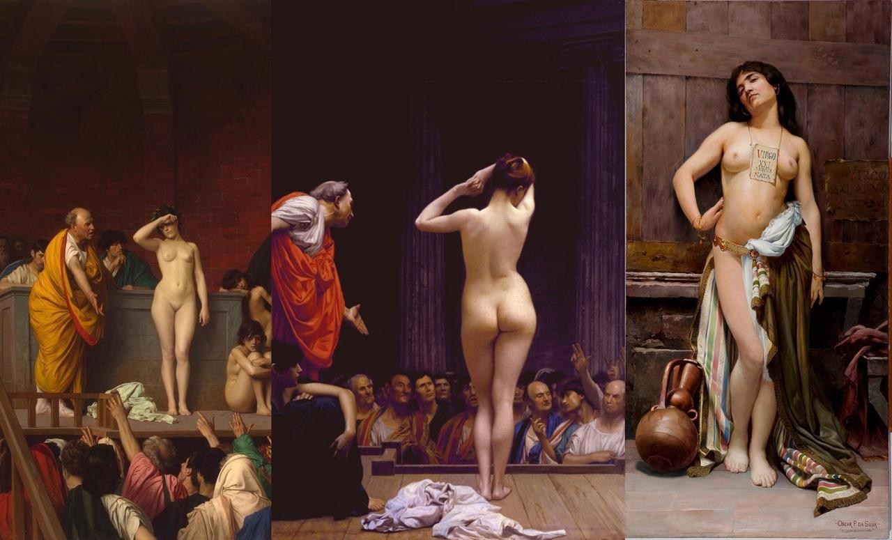 Тут уже было посвободнее, ибо античные бабы в представлении людей из XIX века одетыми ходили редко. Однако древние рынки рабов все равно пользовались популярностью, поскольку социальной нагрузки несут куда больше, чем просто валяющиеся на мраморе девки с томными взглядами.