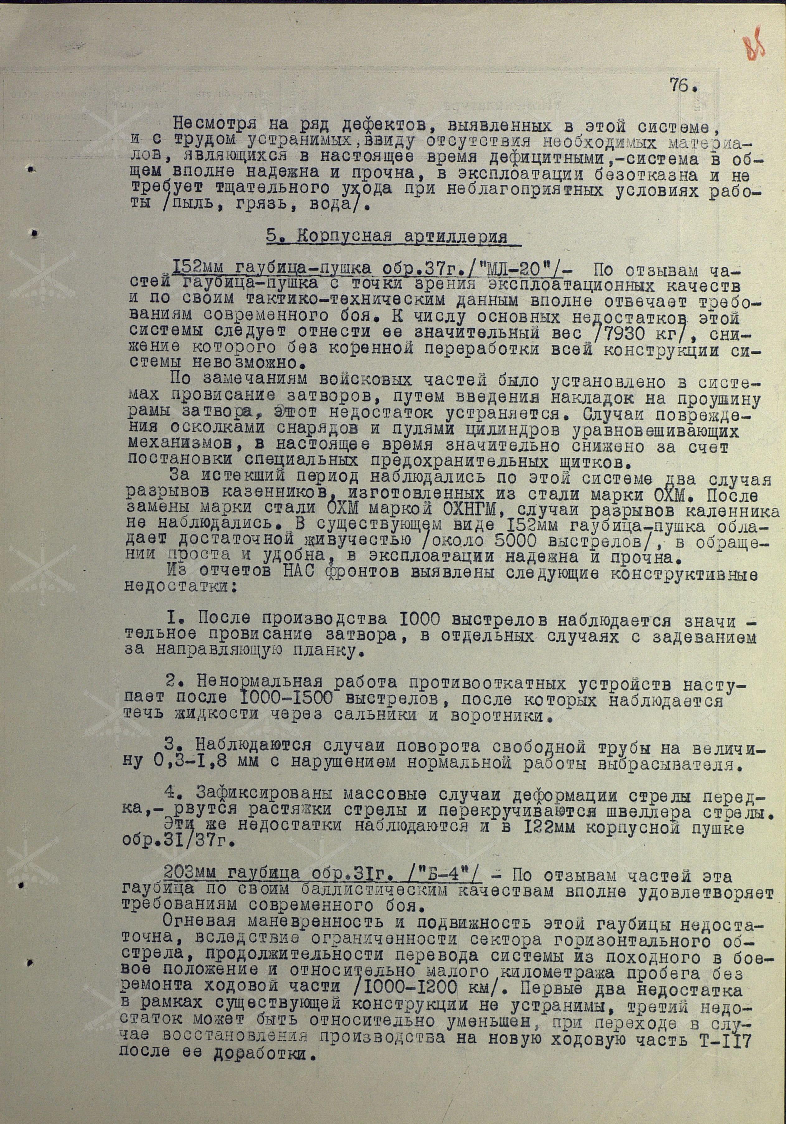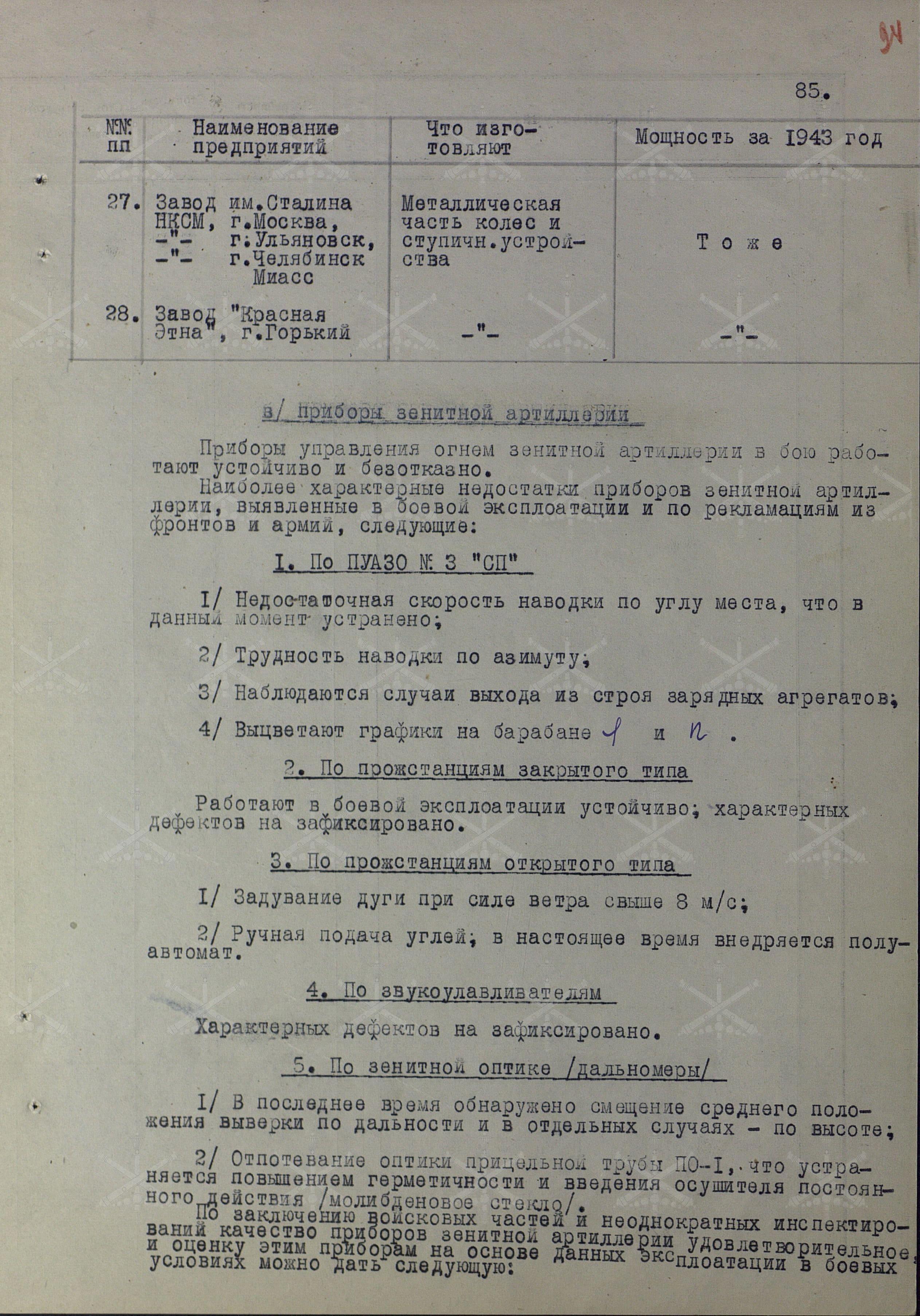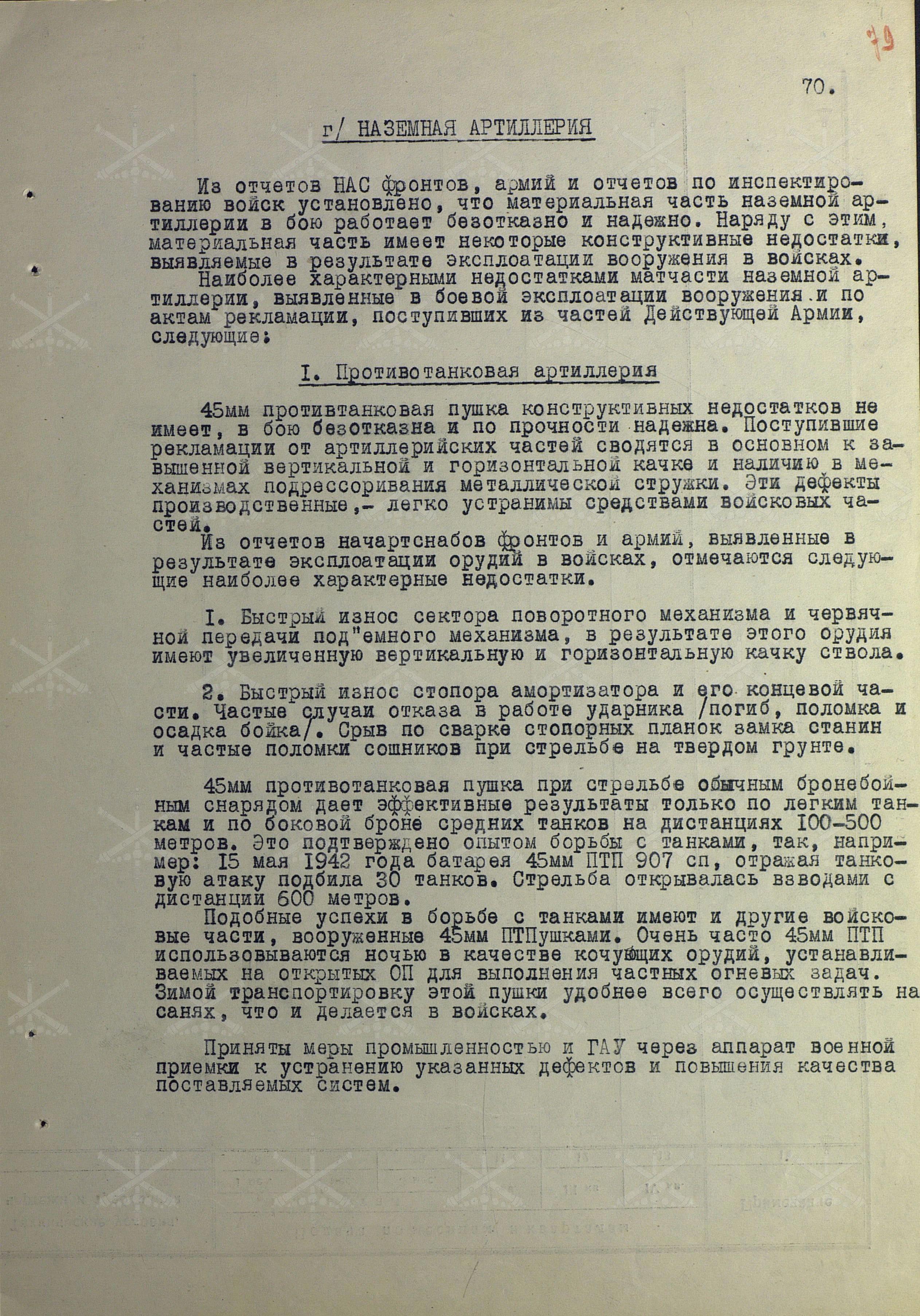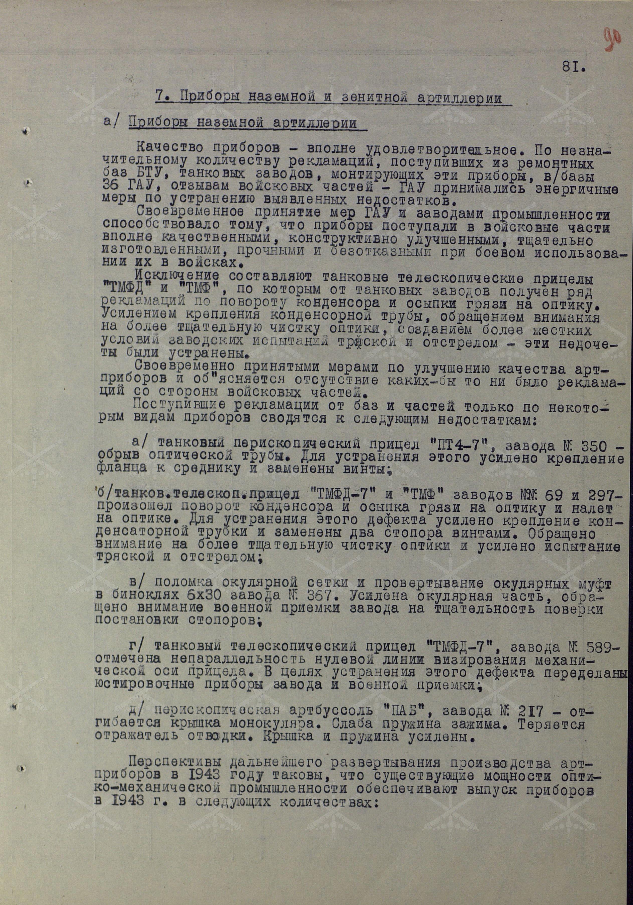Отдавая себе отчёт о случайной популярности предыдущего поста, продолжу выкладку оставшихся разделов пункта В «Качественное состояние, поступающего от промышленности вооружения» из отчёта ГАУ 1943 года. Сегодняшний материал объёмный и охватывает практически всю линейку вооружения, заказываемого ГАУ, включая приборы ПУАЗО и даже звукоулавливатели.