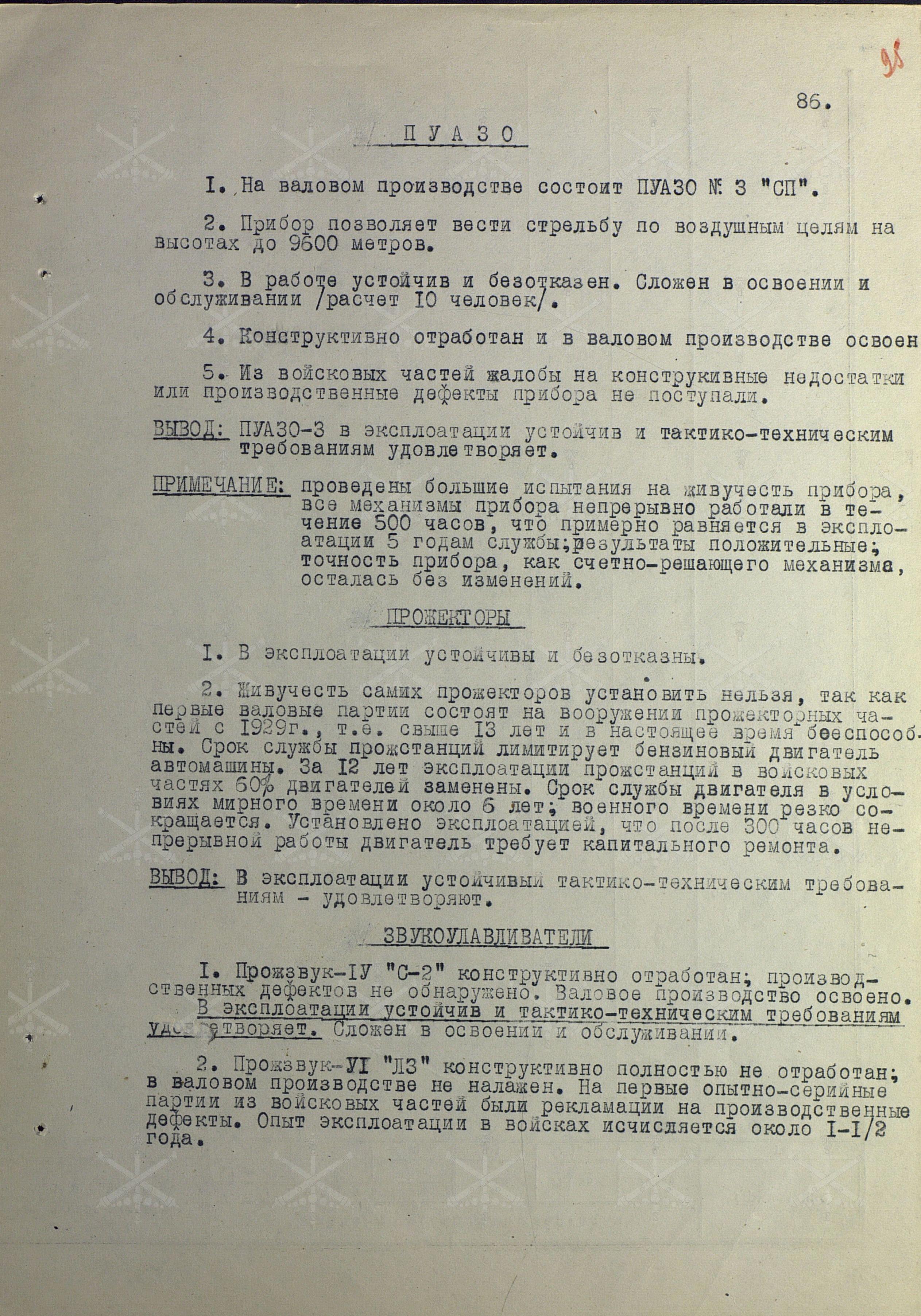 О качестве зенитной и наземной артиллерии, приборов ПУАЗО, звукоулавливателей и оптики