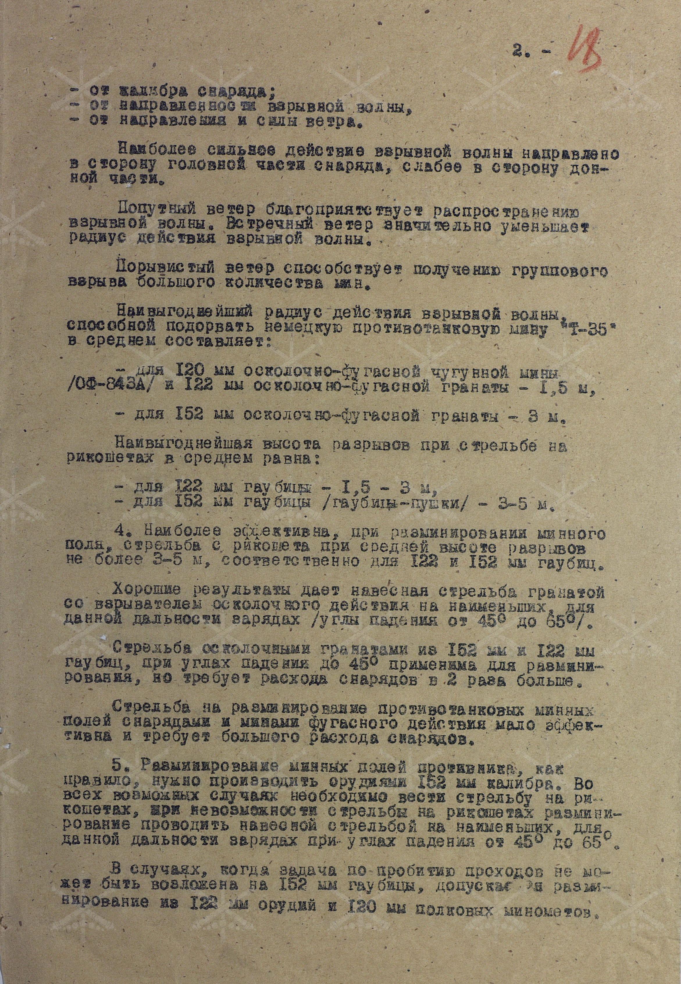 — низкая, по сравнению с сапёрными подразделениями, эффективность подобного разминирования. Об этом говорится в первых же строках указания, считая артиллерийскую стрельбу «крайним средством разминирования». К тому же, выяснилось, что противопехотные мины устойчивы к артиллерийскому огню и даже направление ветра может существенно повлиять на результаты.