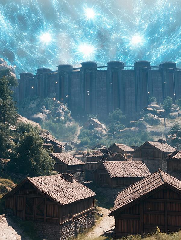 ...Небо за стеной переливалось светящимися волнами похожими на северное сияние, но одного цвета, а воздух над южными воротами, кипел и светился от попадания плазмы в невидимый барьер. То, что это сгустки плазмы, у меня не было сомнений, ни с чем подобное оружие не спутаю. Сотни таких сгустков прилетали из-за стены и на границе с ней, врезались в преграду, которая проявлялась в момент попадания. От столкновения расходились концентрические круги, а в самом месте удара еще какое-то время виднелось яркое белое пятно. Из-за количества плазменных снарядов уже довольно приличная площадь этого щита постоянно светилась, и, казалось, весь воздух пылал...