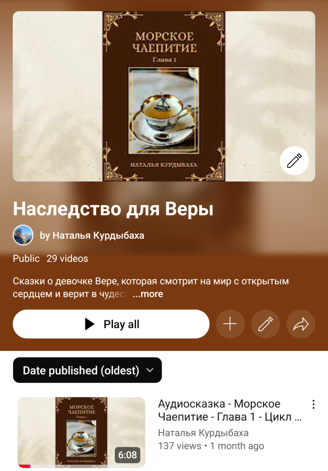 Автор: Наталья КурдыбахаТри сказки из цикла «Наследство для Веры» теперь доступны на YouTube в аудио формате!