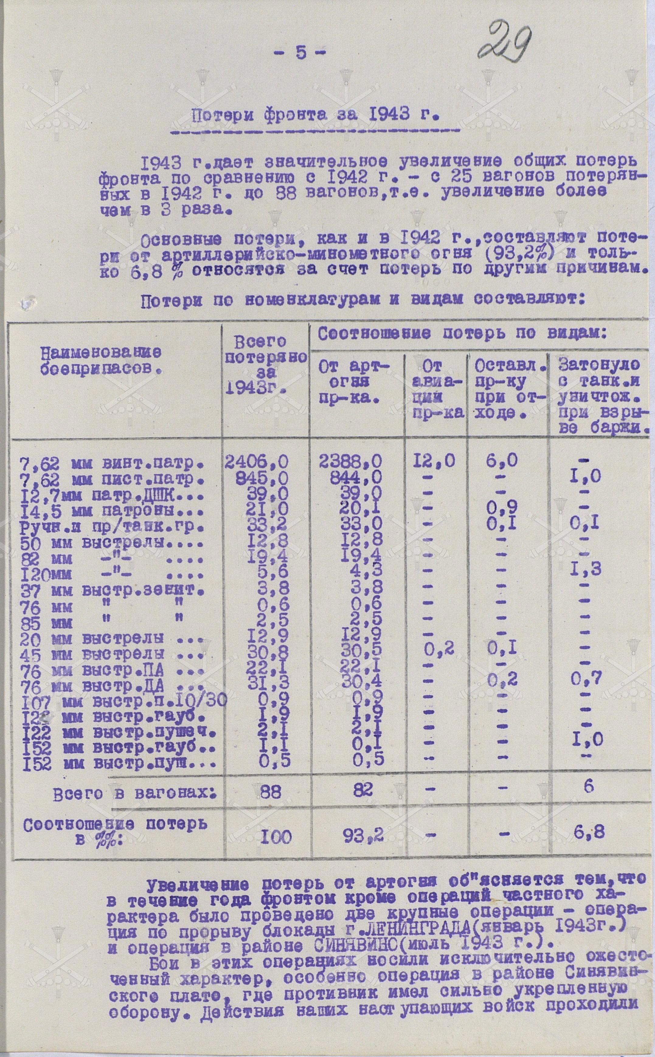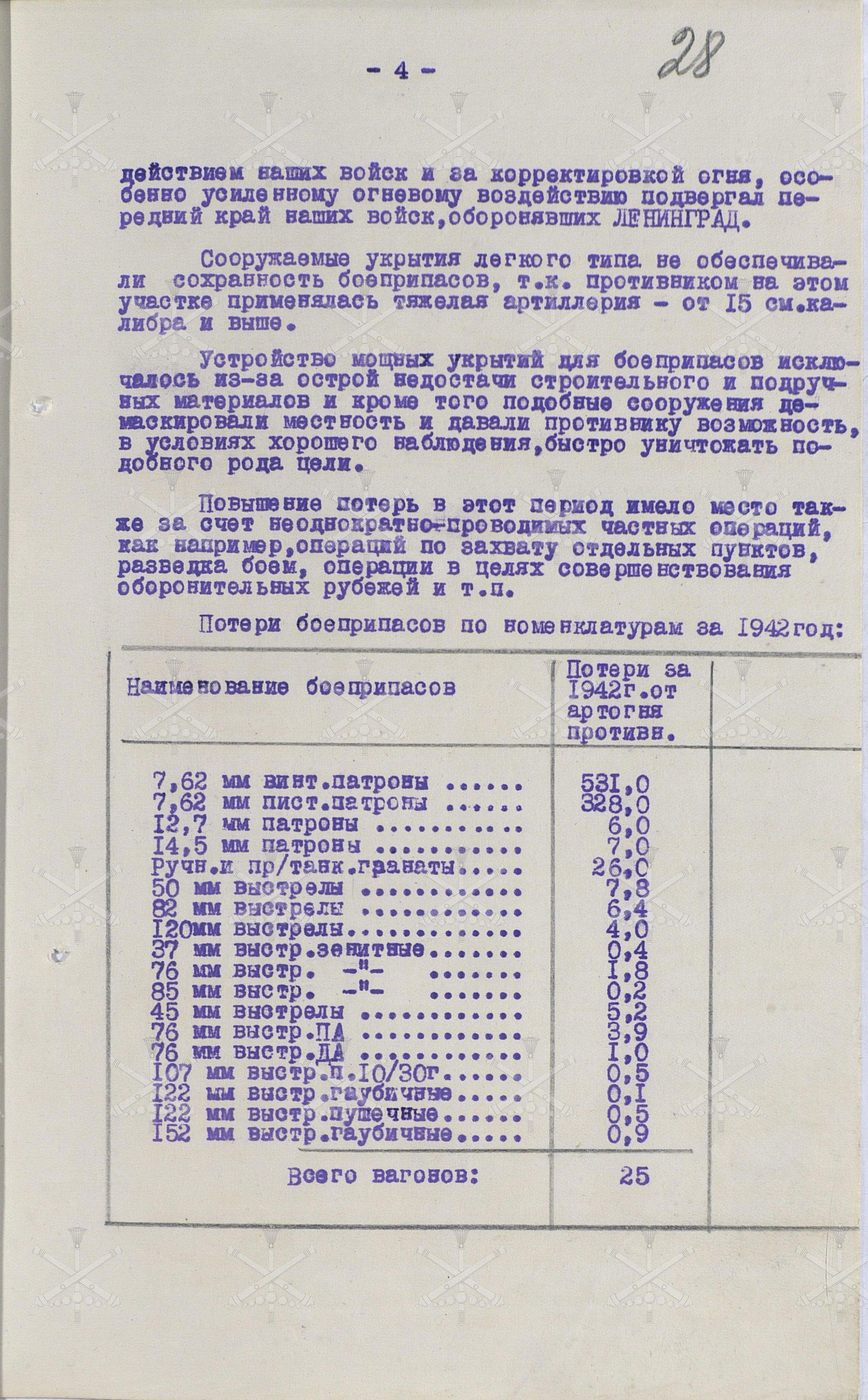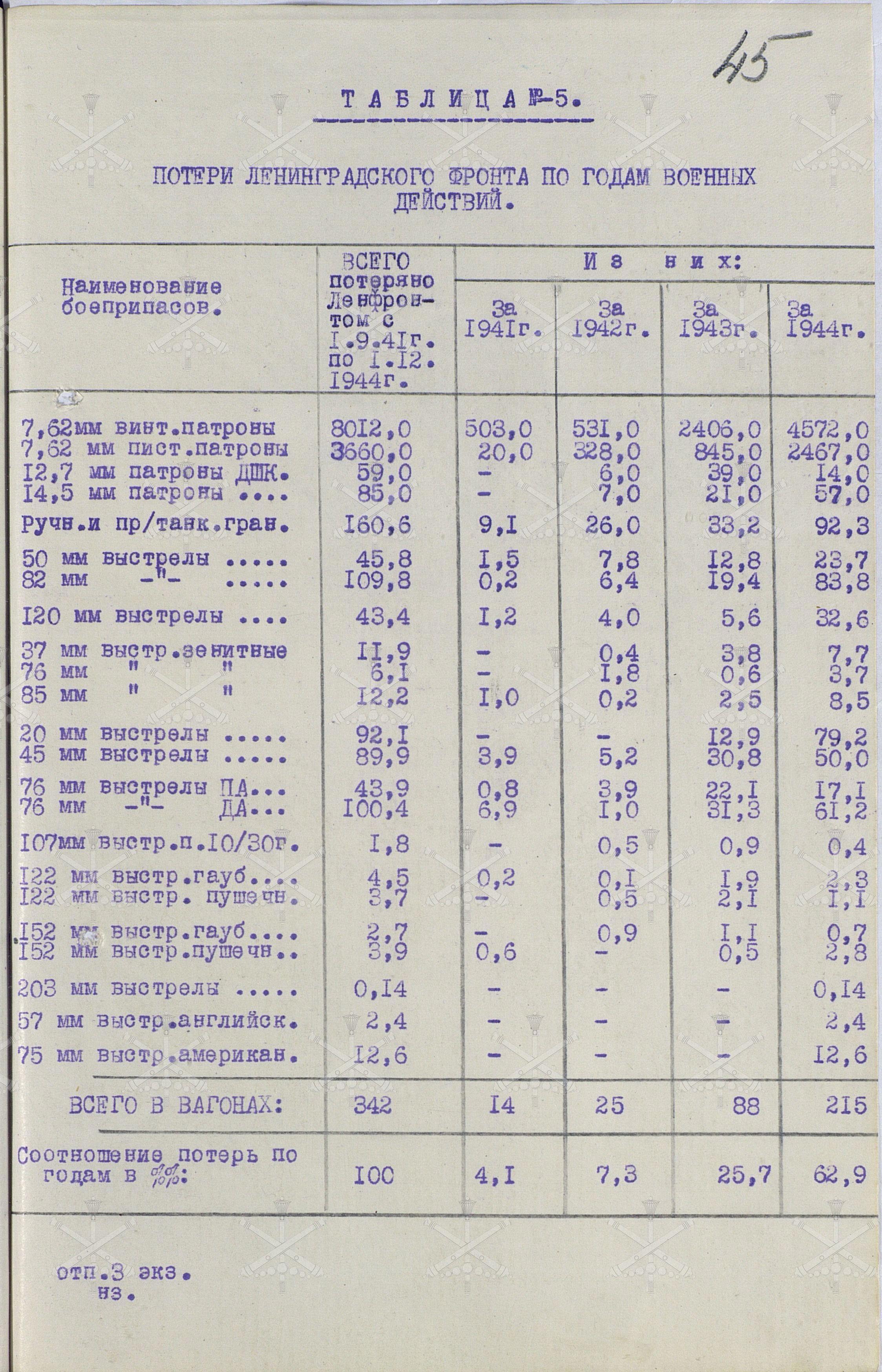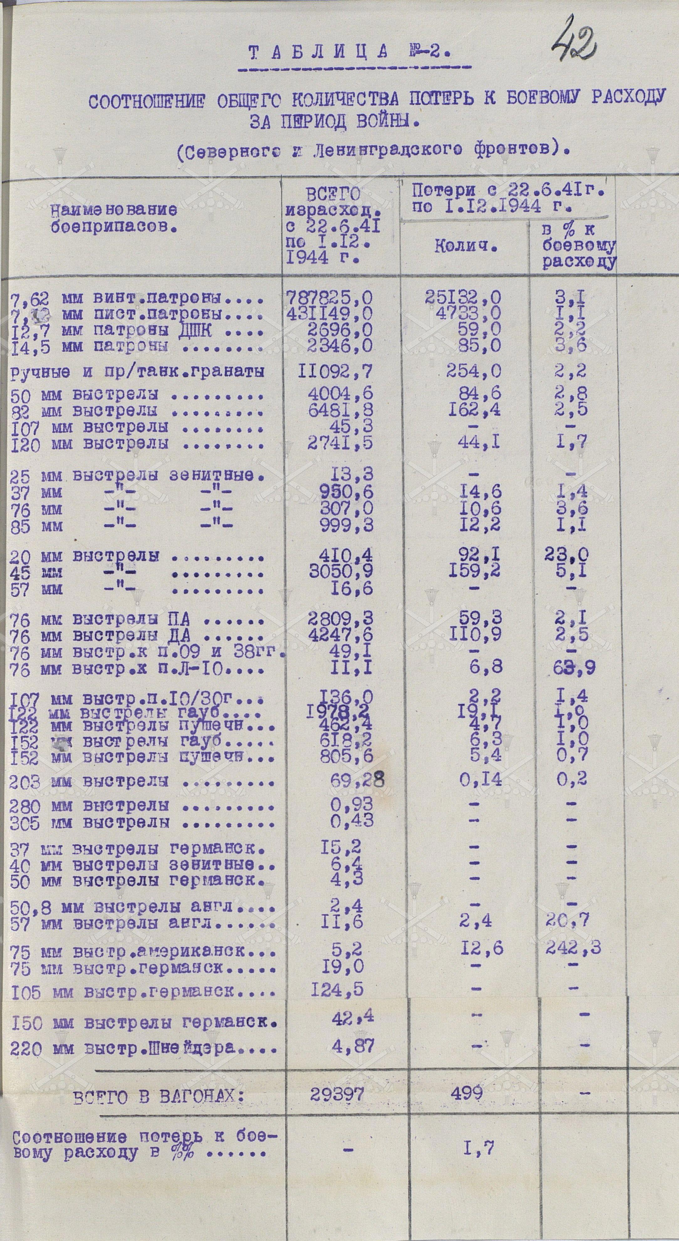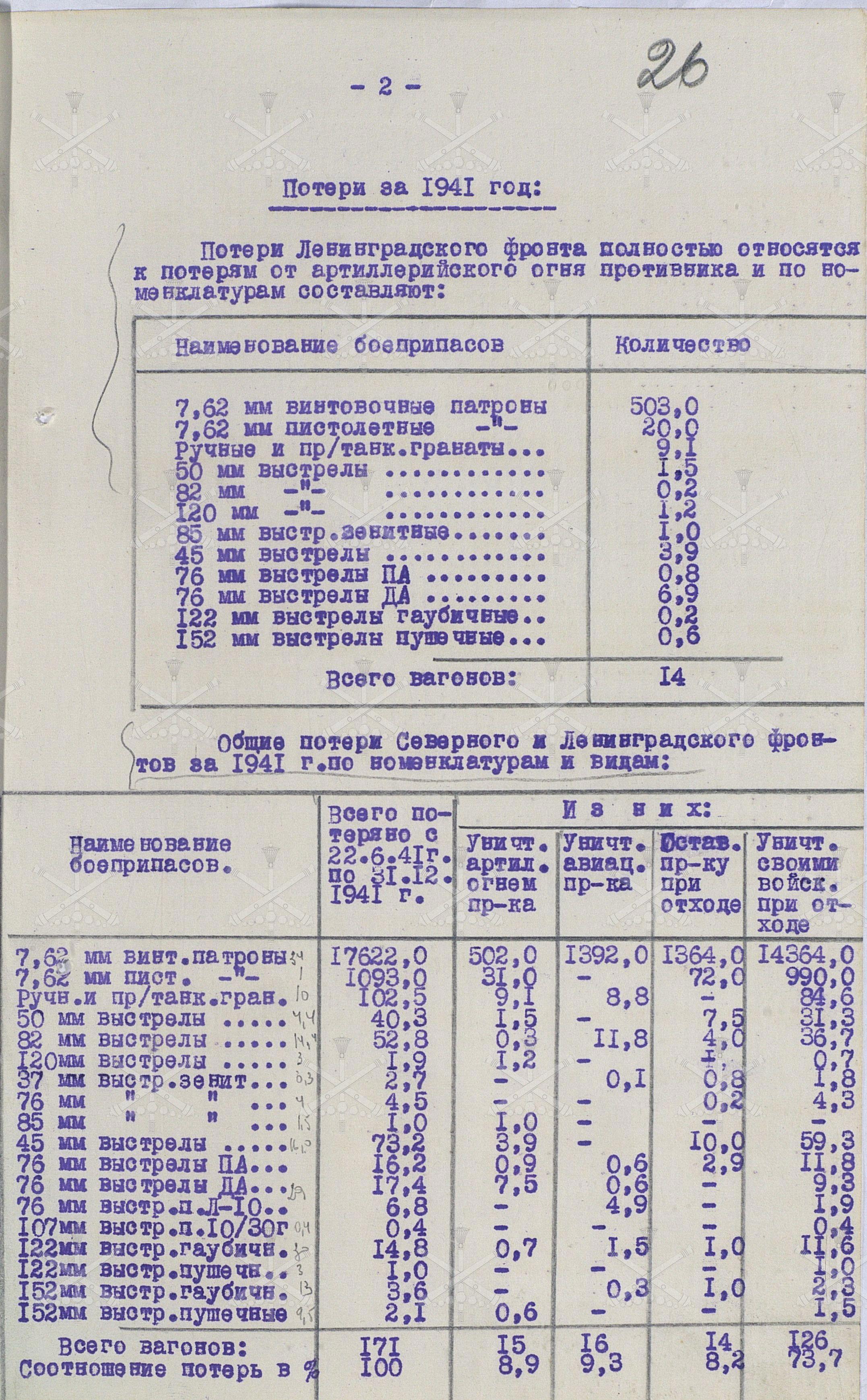 Потери боеприпасов Ленинградским и Северным фронтами в Отечественной войне 1941-1944 г.г.