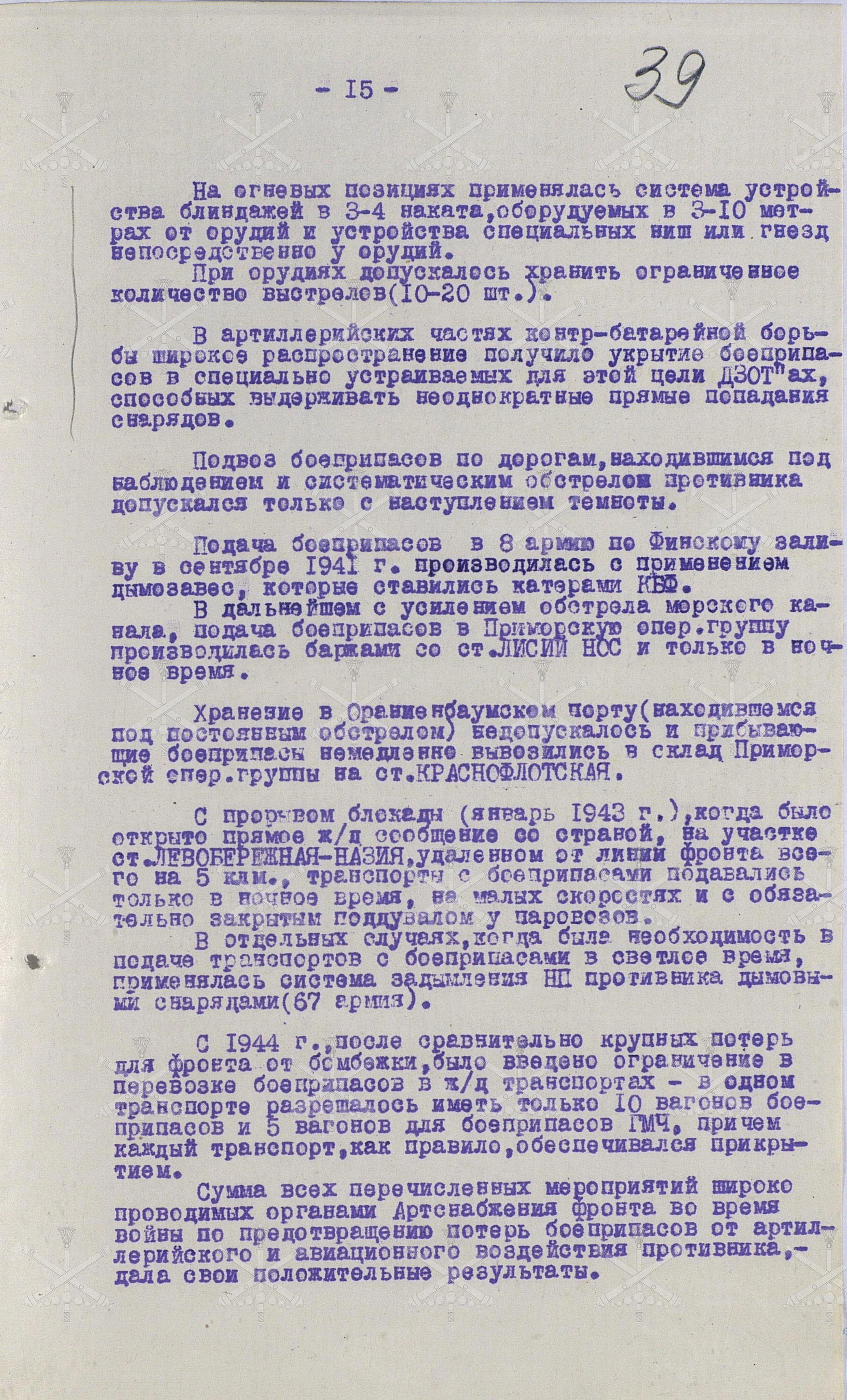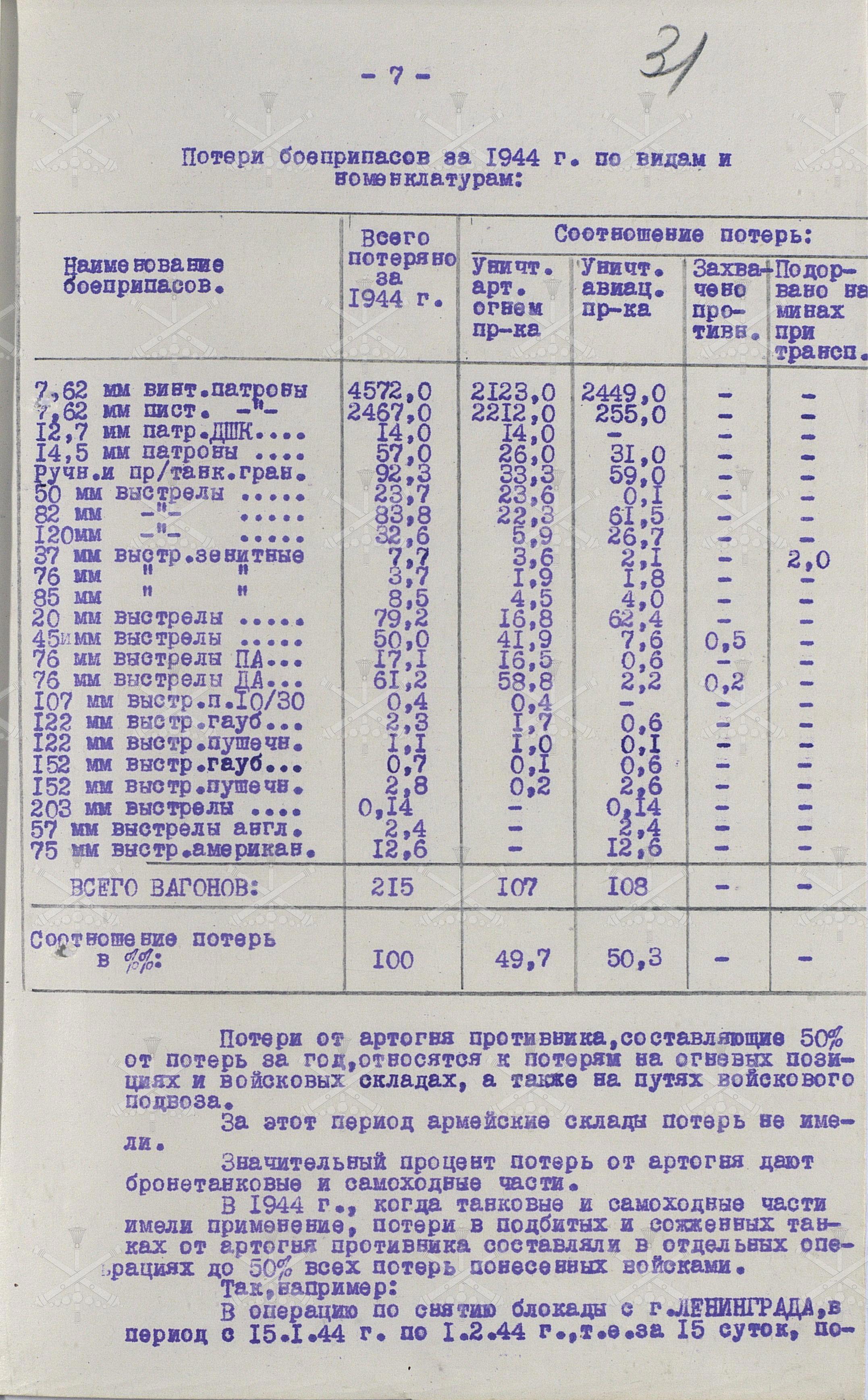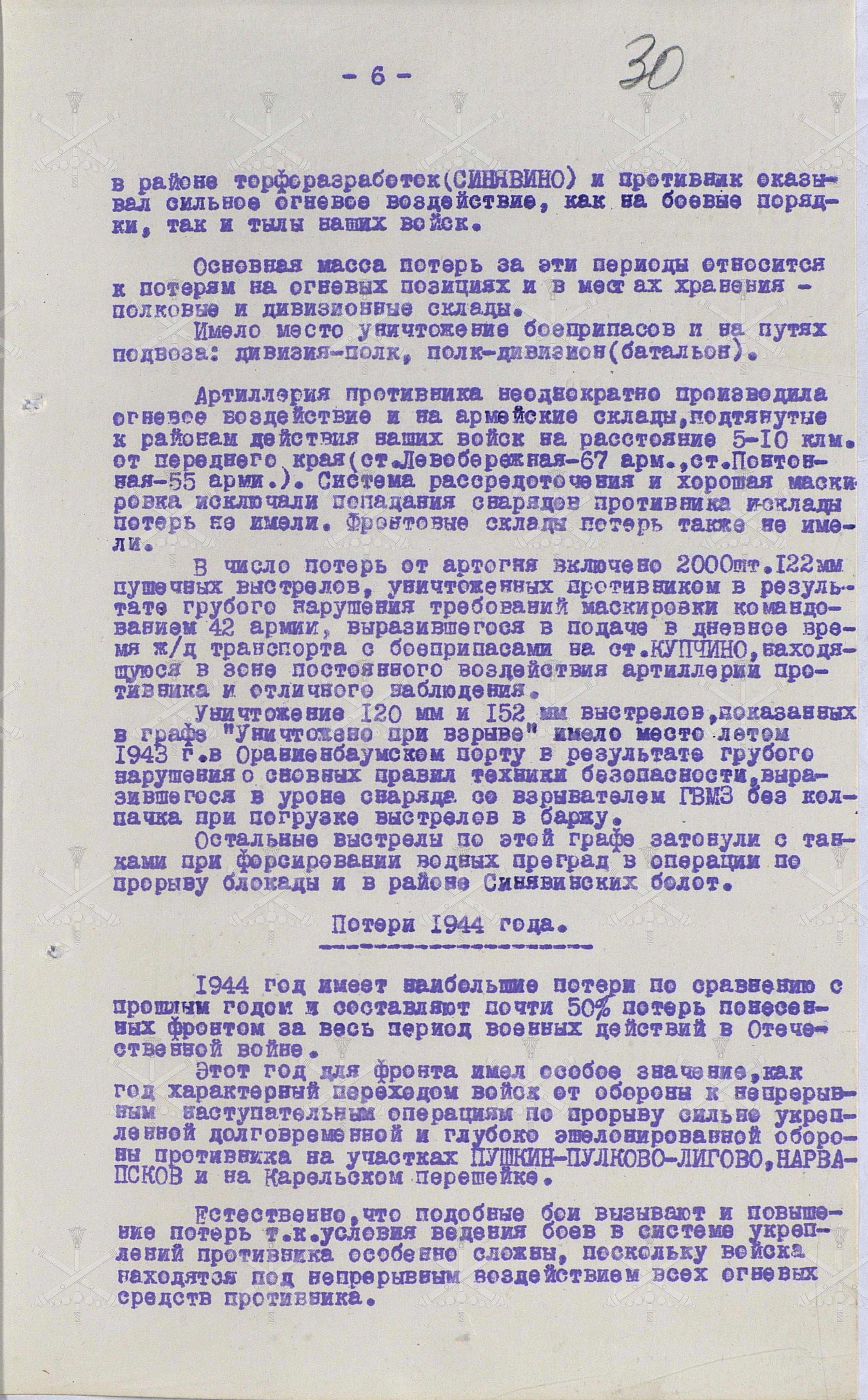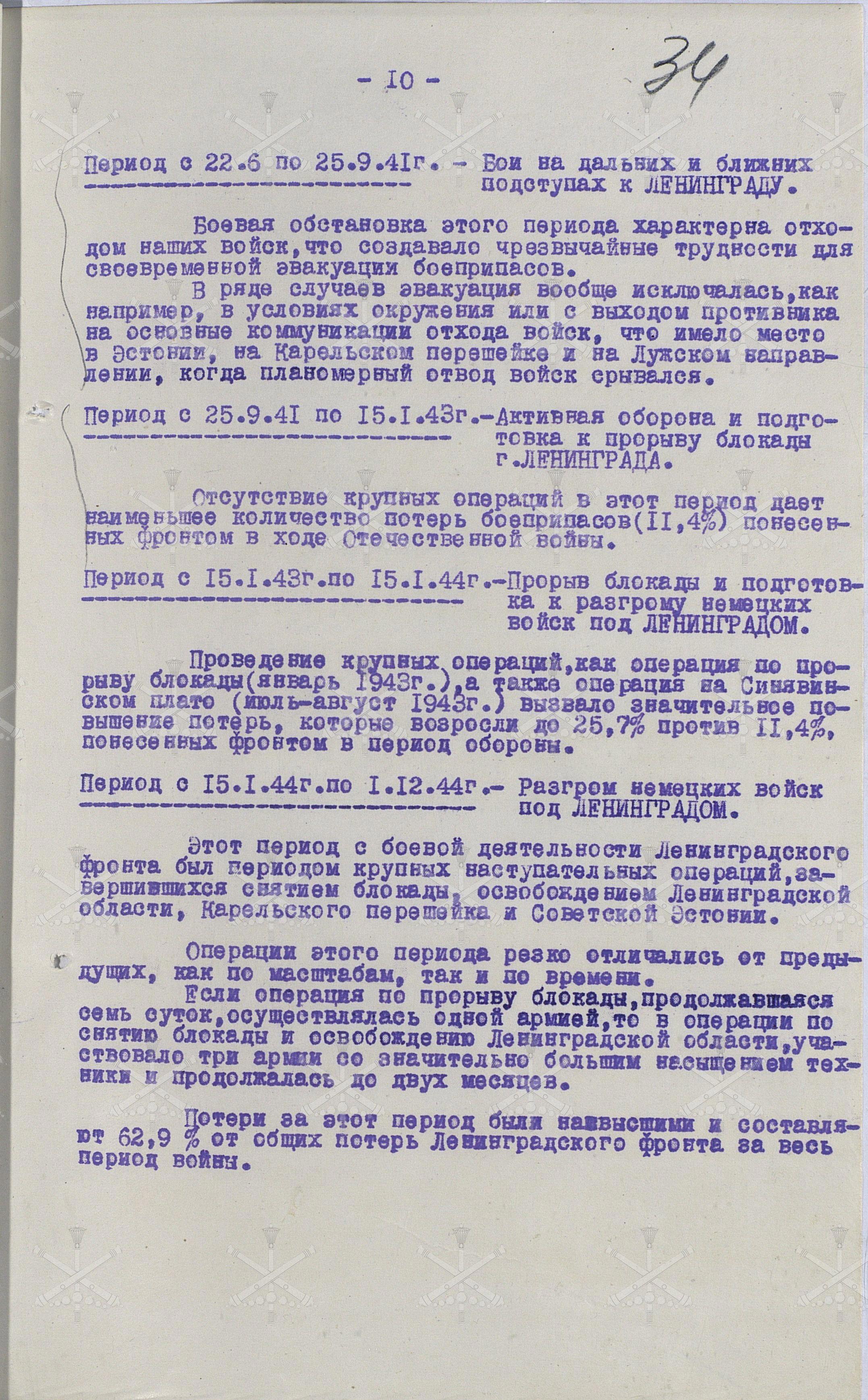 Потери боеприпасов Ленинградским и Северным фронтами в Отечественной войне 1941-1944 г.г.