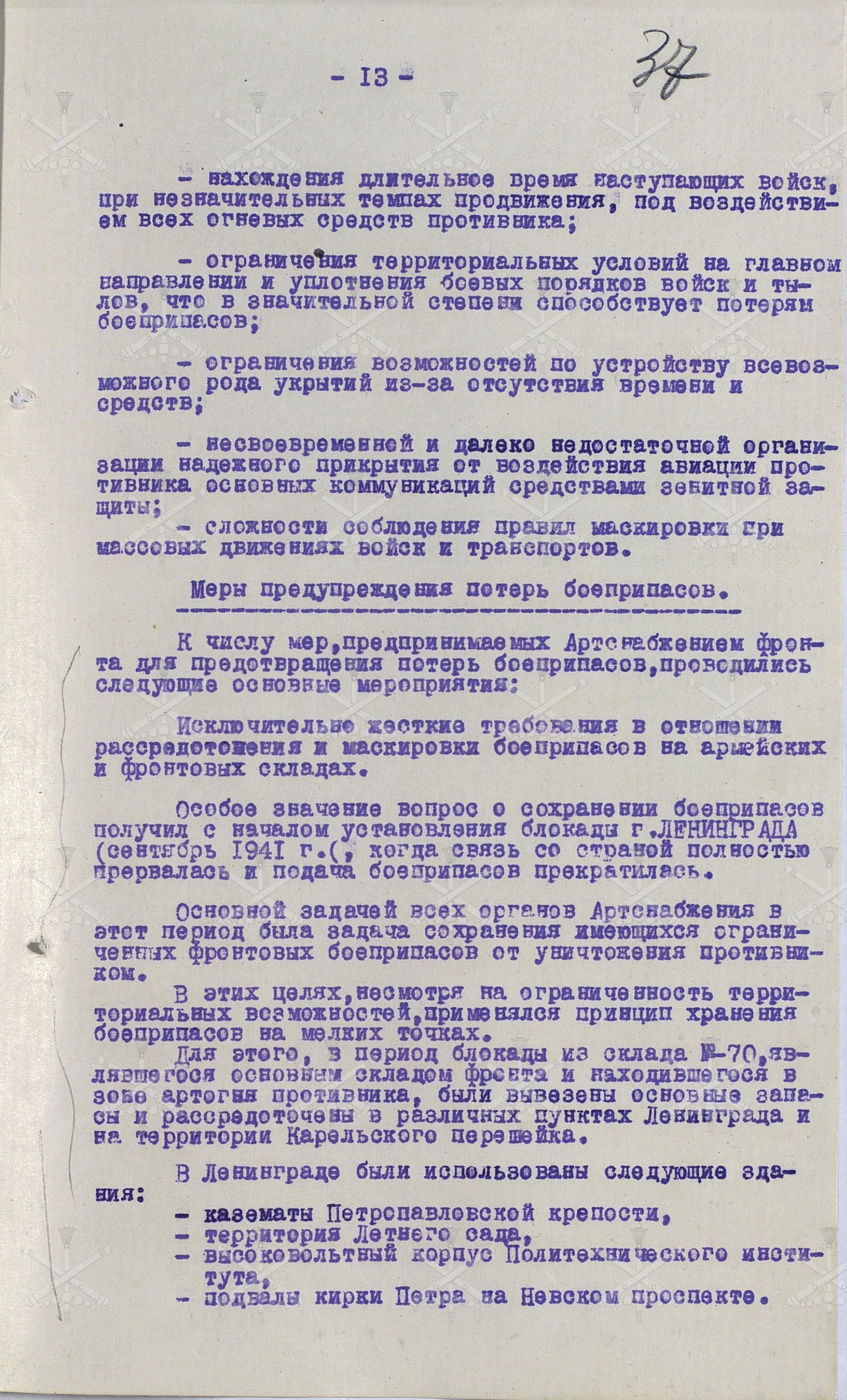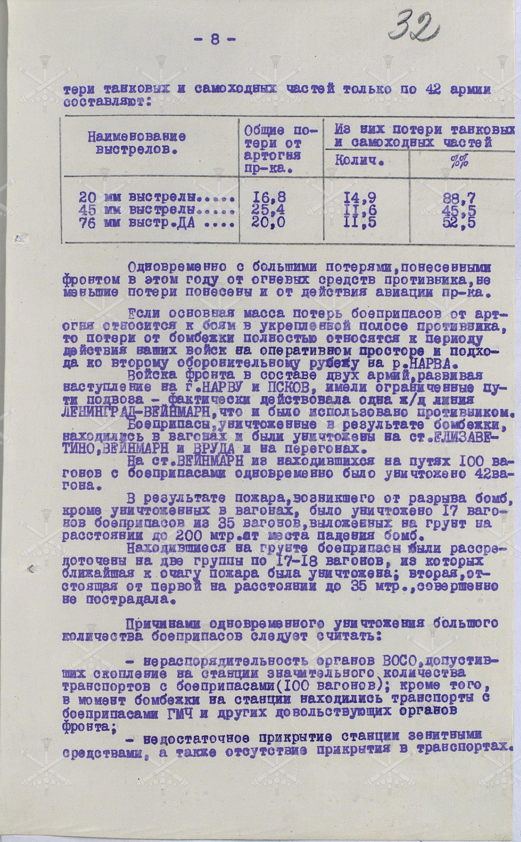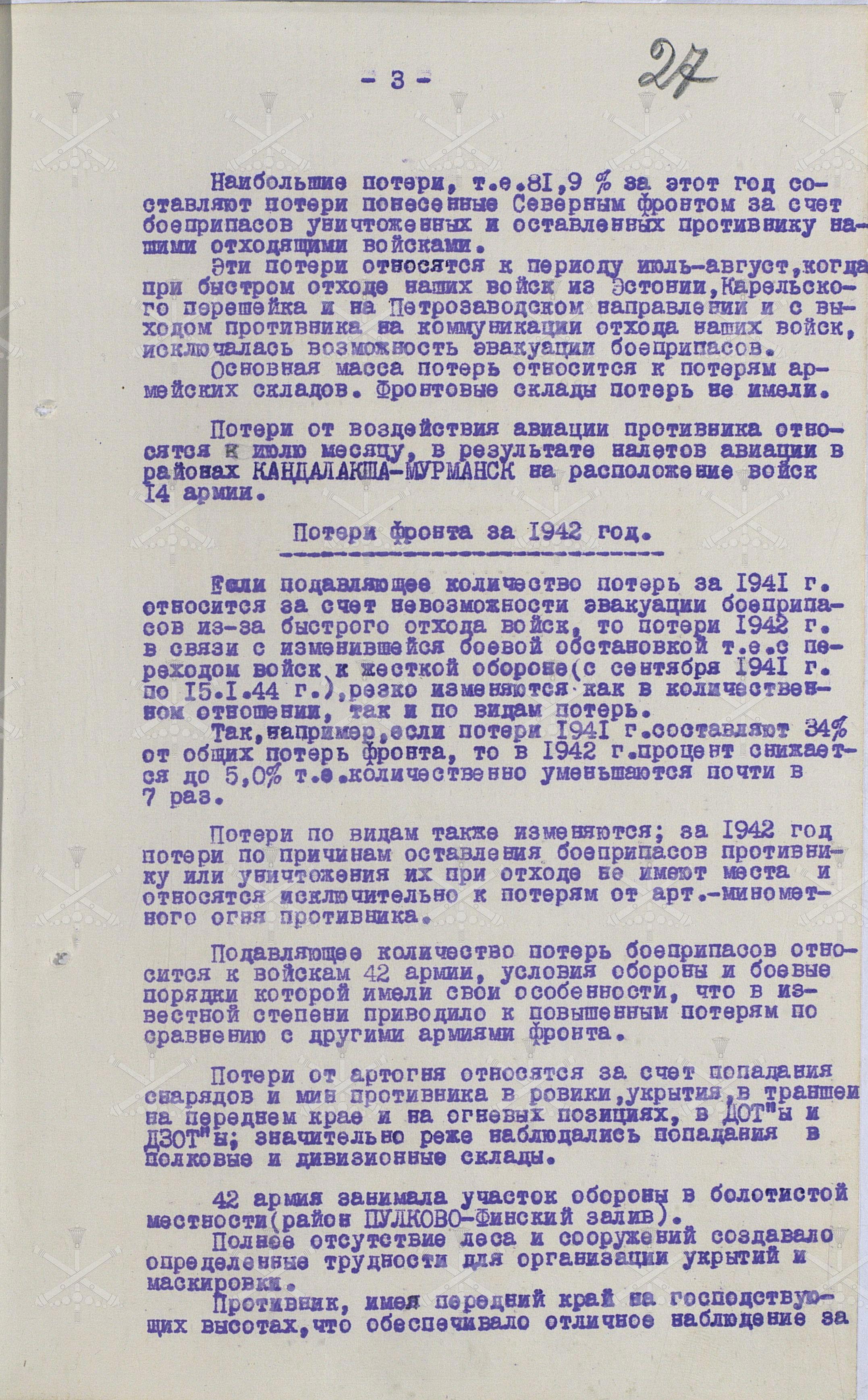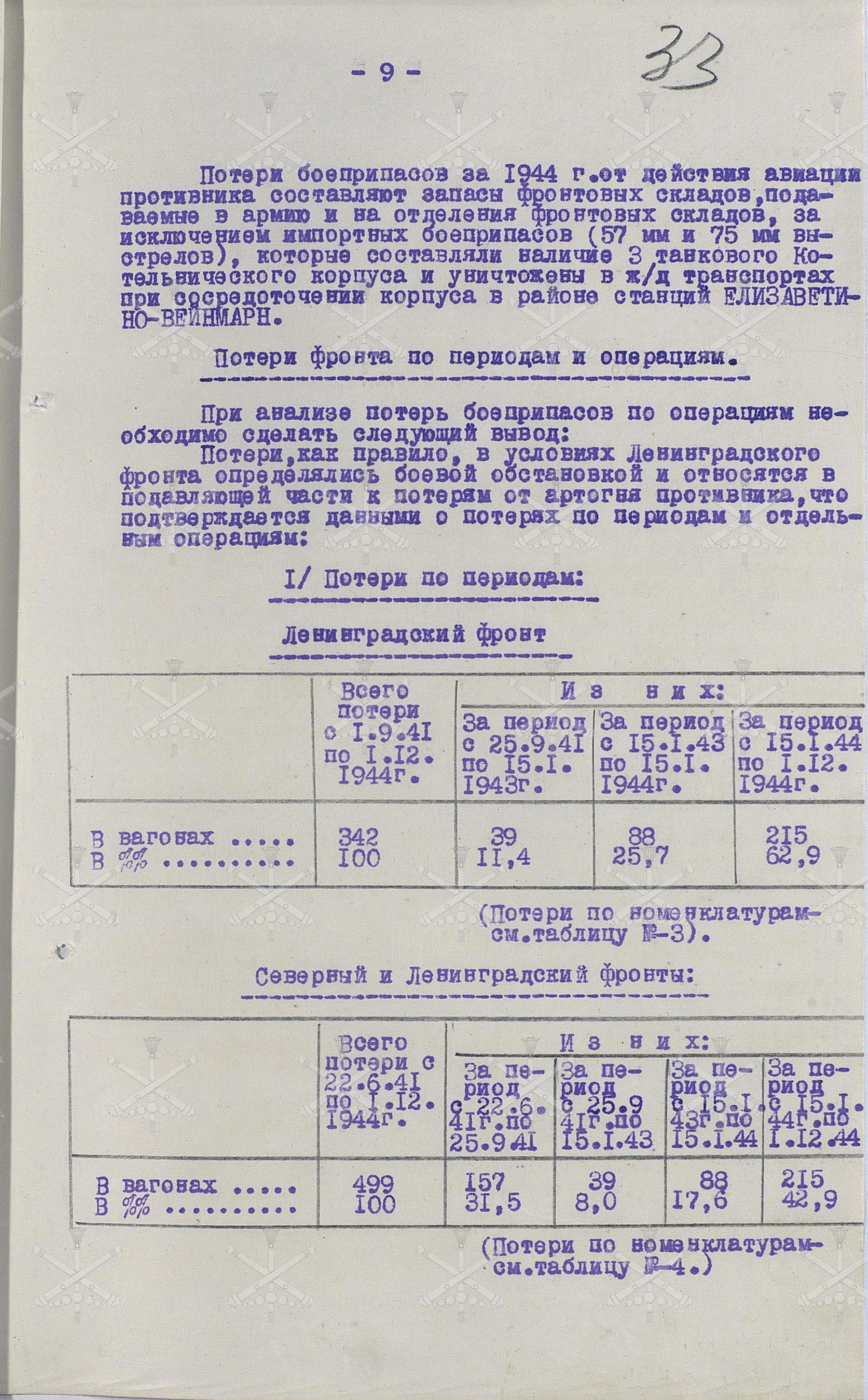 Потери боеприпасов Ленинградским и Северным фронтами в Отечественной войне 1941-1944 г.г.