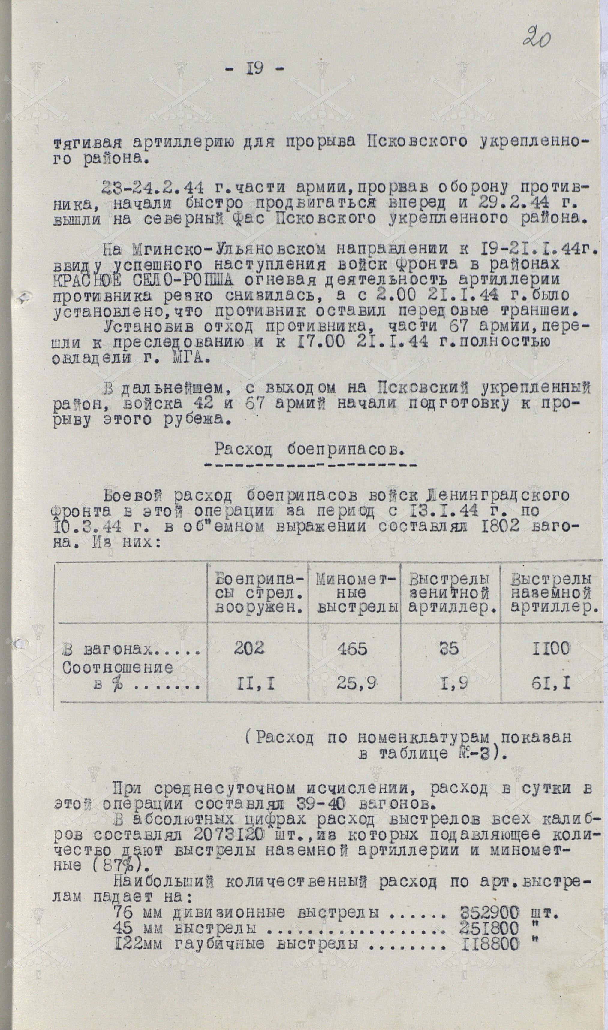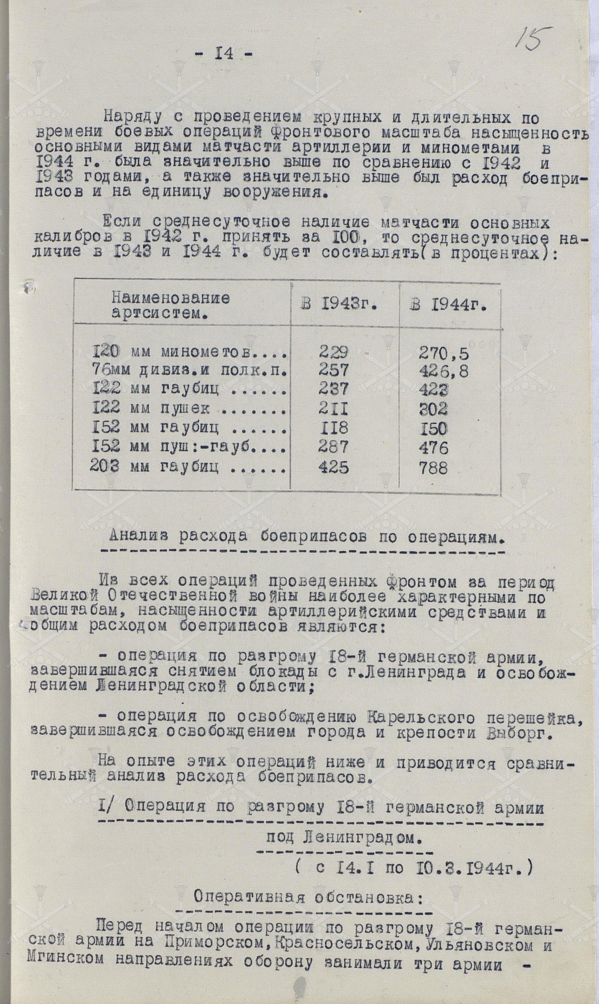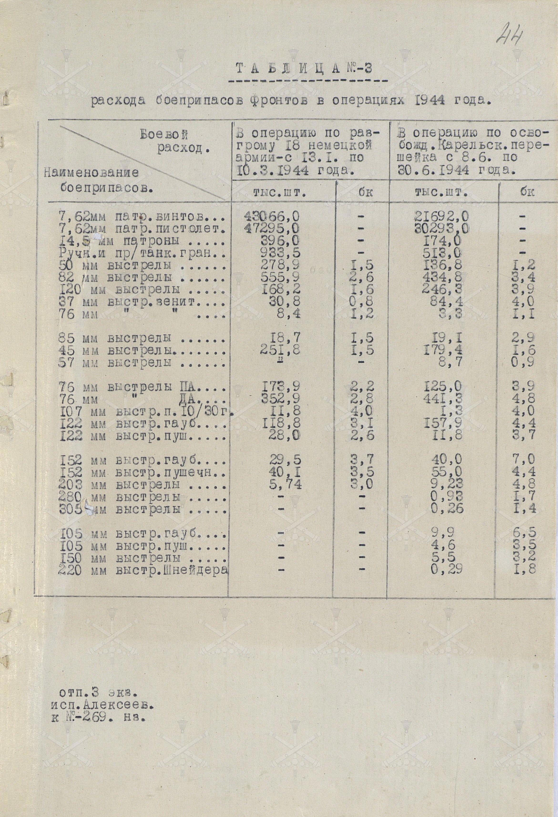 Анализ расхода боеприпасов в операциях, проведённых Ленинградским фронтом