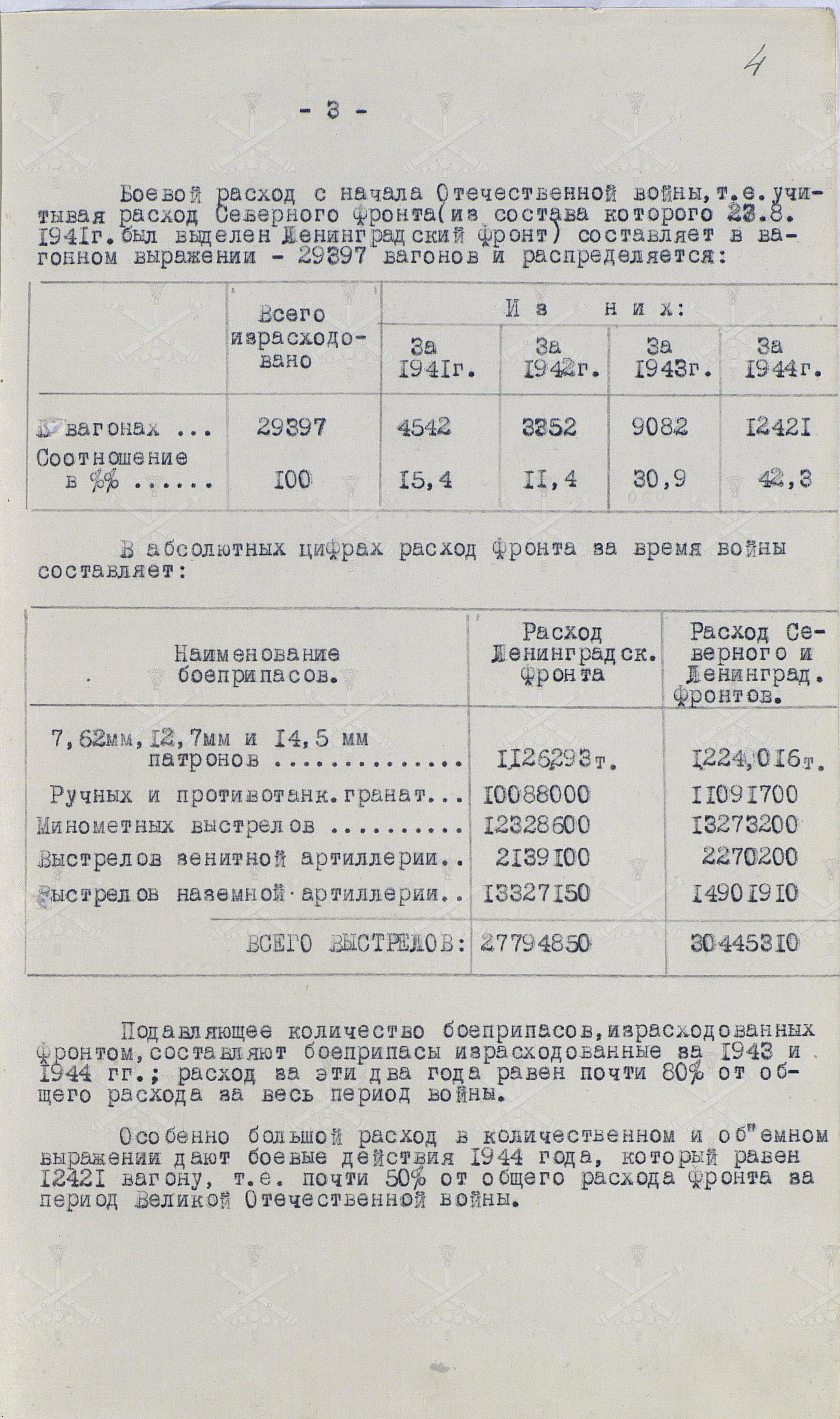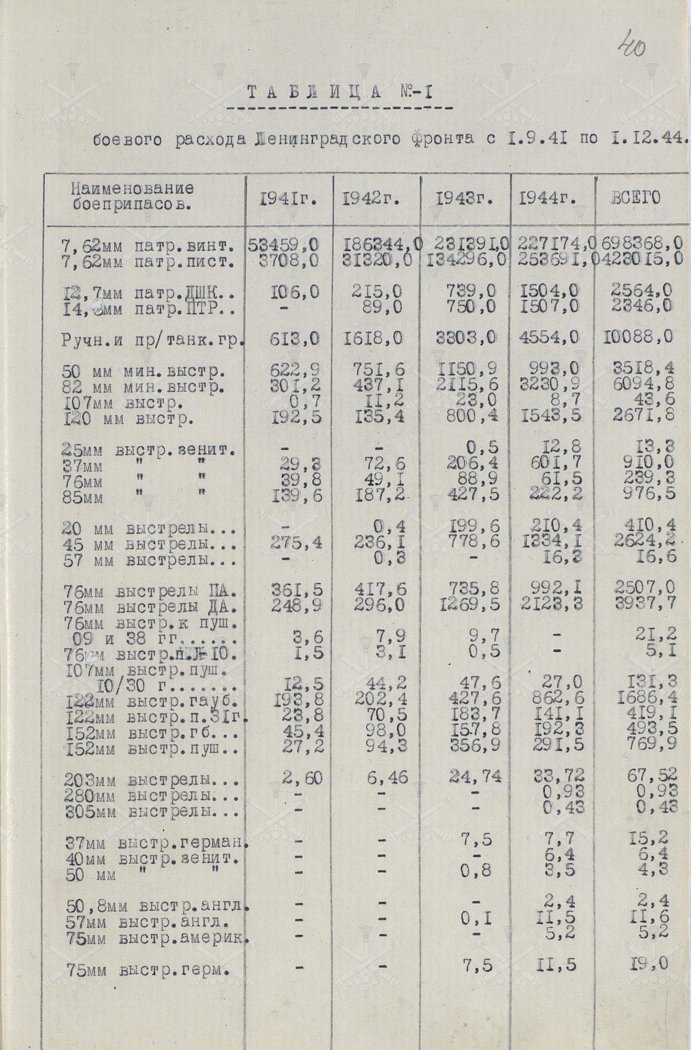 Темой сегодняшнего разговора будет расход боеприпасов Ленинградским фронтом с августа 1941 г. по декабрь 1944 г. По сути дела, этим документом обобщаются данные квартальных отчётов фронта и докладов по итогам операций. Некоторые из этих документов есть и у меня, но они рассказывают о работе артиллерии других фронтов, в основном охватывая период 1942 - 1943 годов. Если вам, уважаемые читатели, будет интересно, то постепенно выложу и их. Ведь не всем по душе таблицы и графики, а именно на них чаще всего и ведут ссылки.