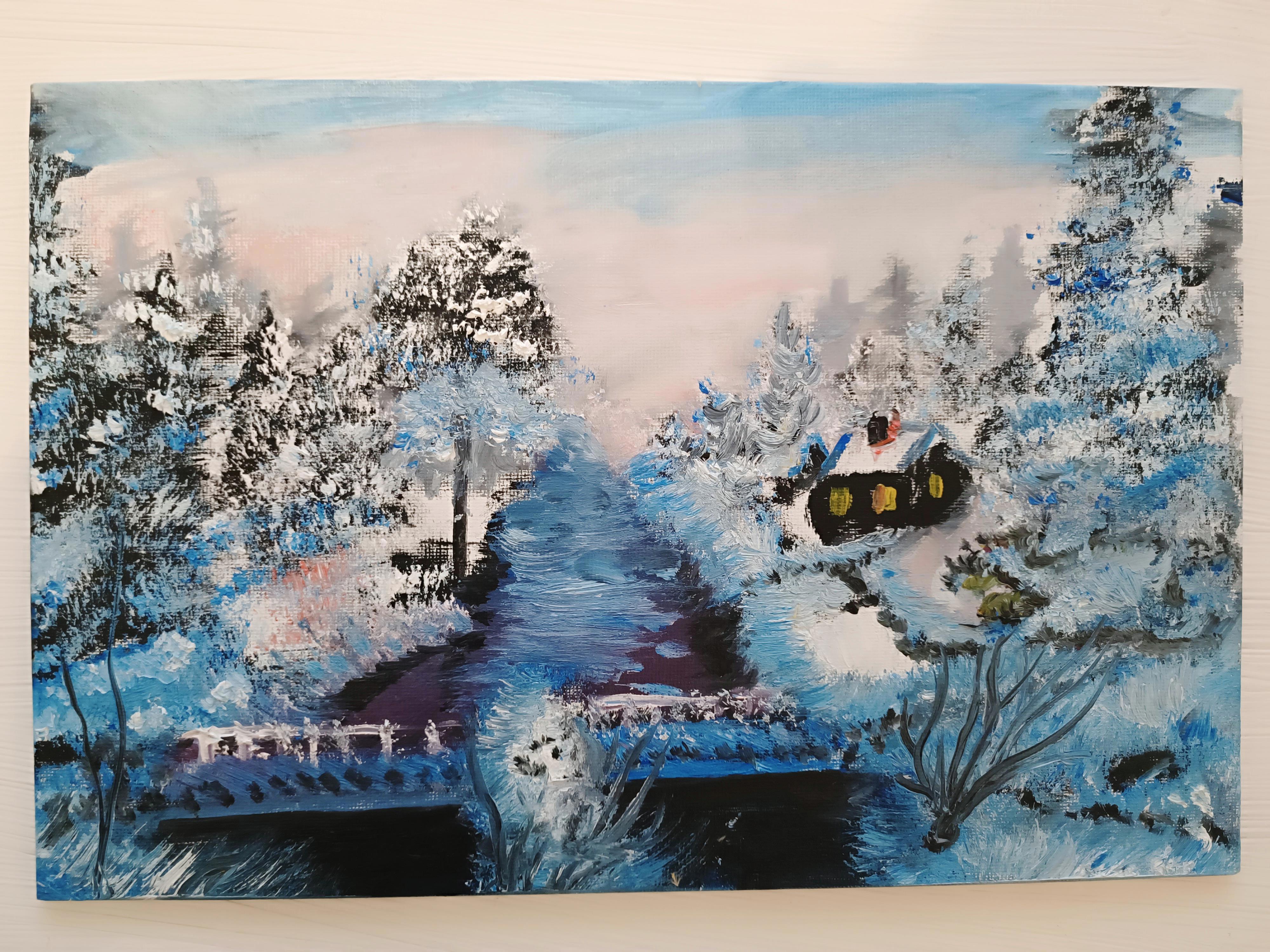 Почти открытка) только на холсте. Формат чуть меньше А4 и чуть больше А5.