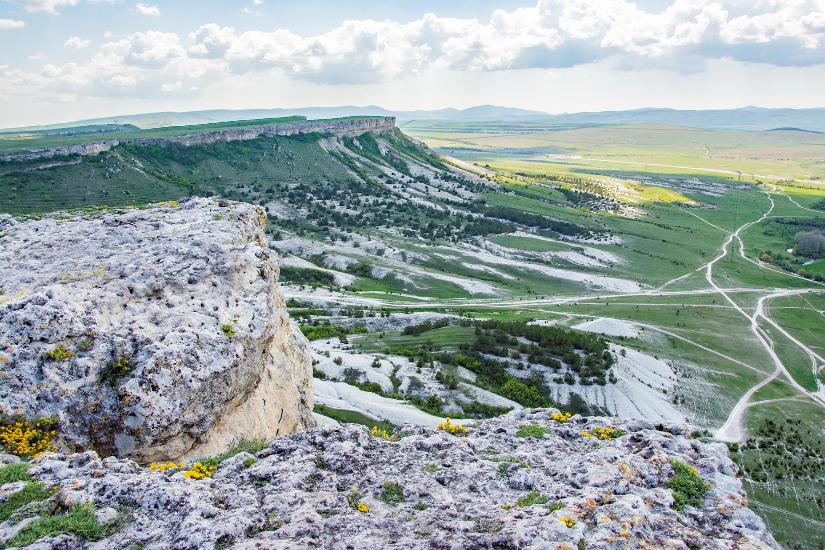Кстати, на неё можно не только подняться, но и въехать на машине, дороги там не очень, но даже жигули проходят. На пузодёрочке, конечно, не проехать. Зато, когда вы поднялись на скалу вы увидите ошеломительные виды.