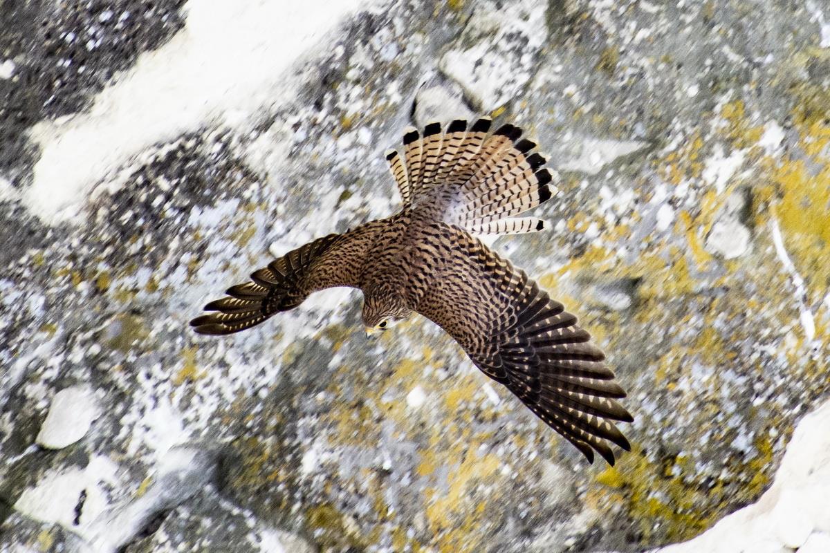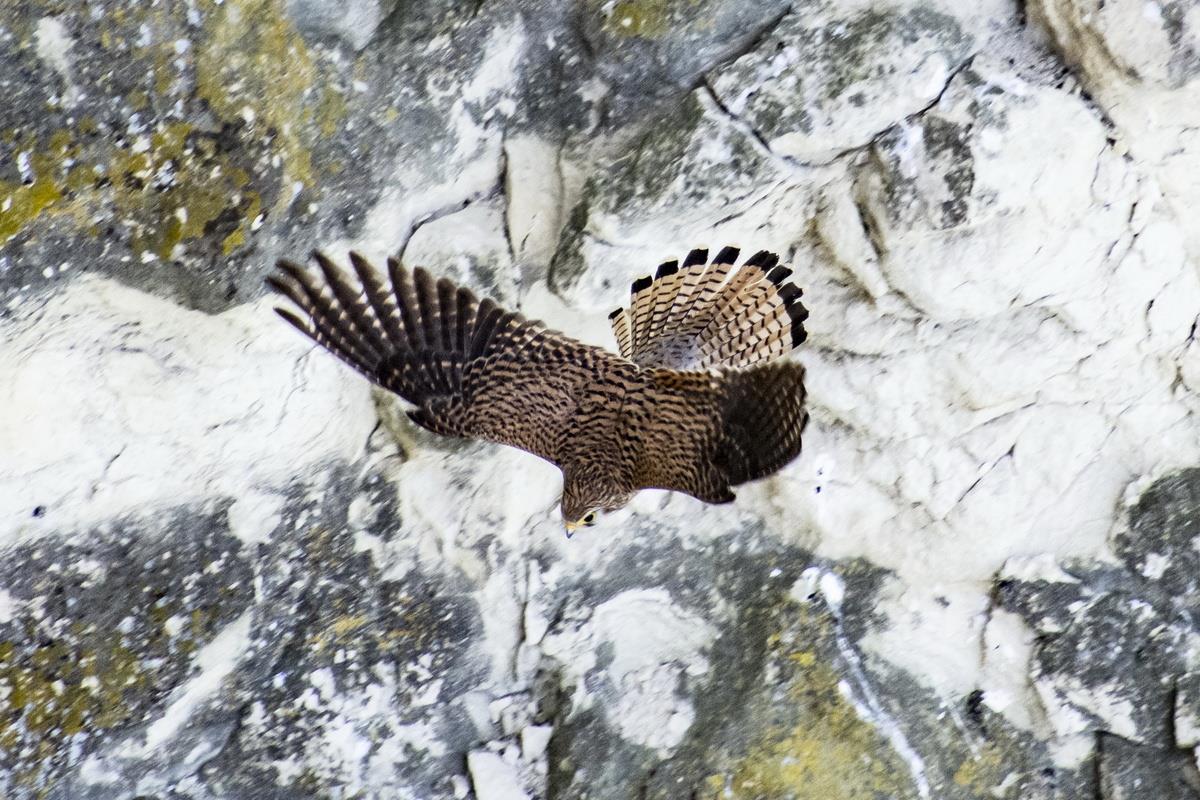 Ястреб летит вдоль скалы. Фото Сергея Малышева.